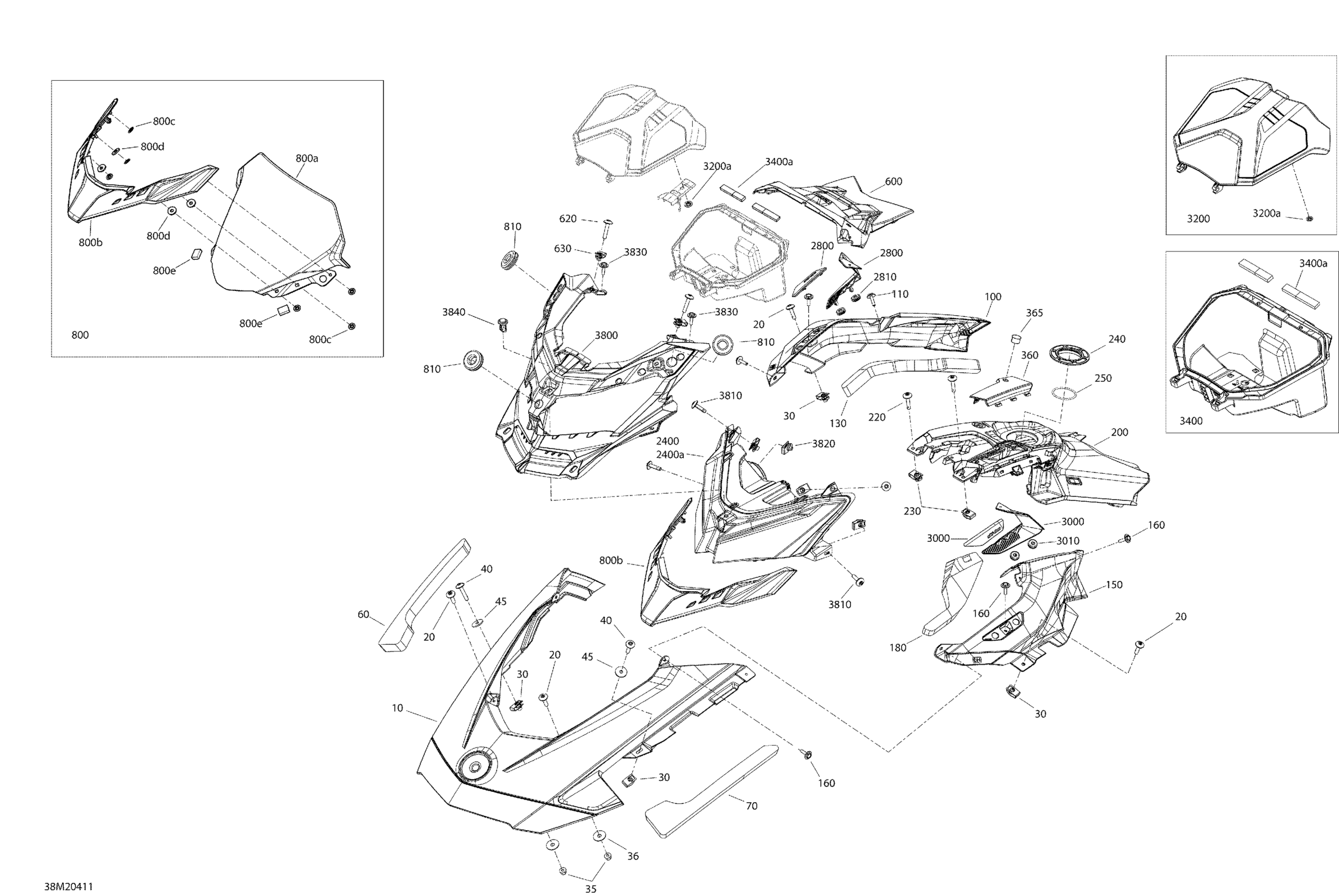 Ski-Doo 001 - BACKCOUNTRY 600R E-TEC - North America, 2020 09- Body - Hood Section - Gulfstream Blue Diagram