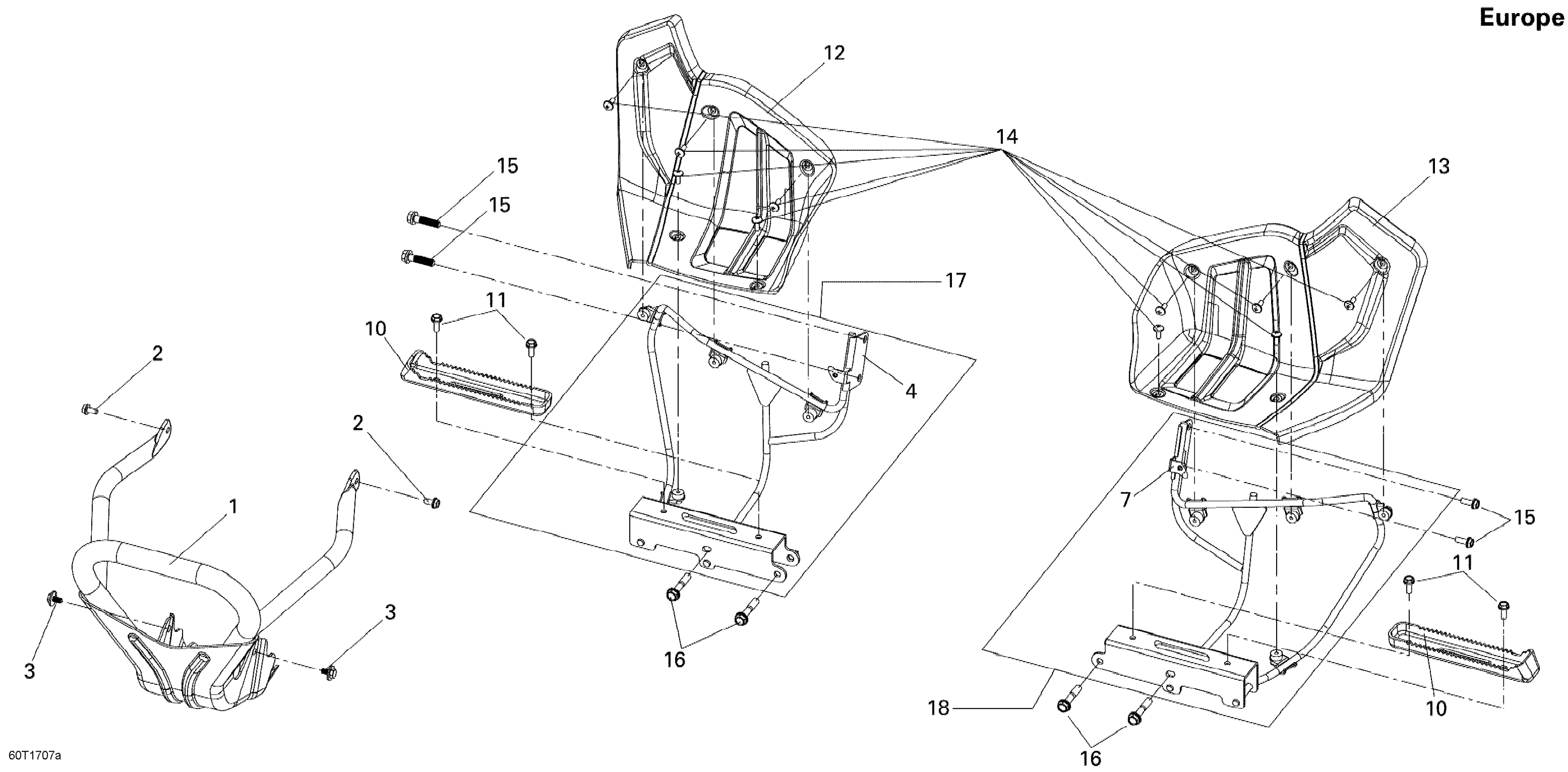 Can-Am DS 250, 2026 Front Bumper And Footrests International Diagram