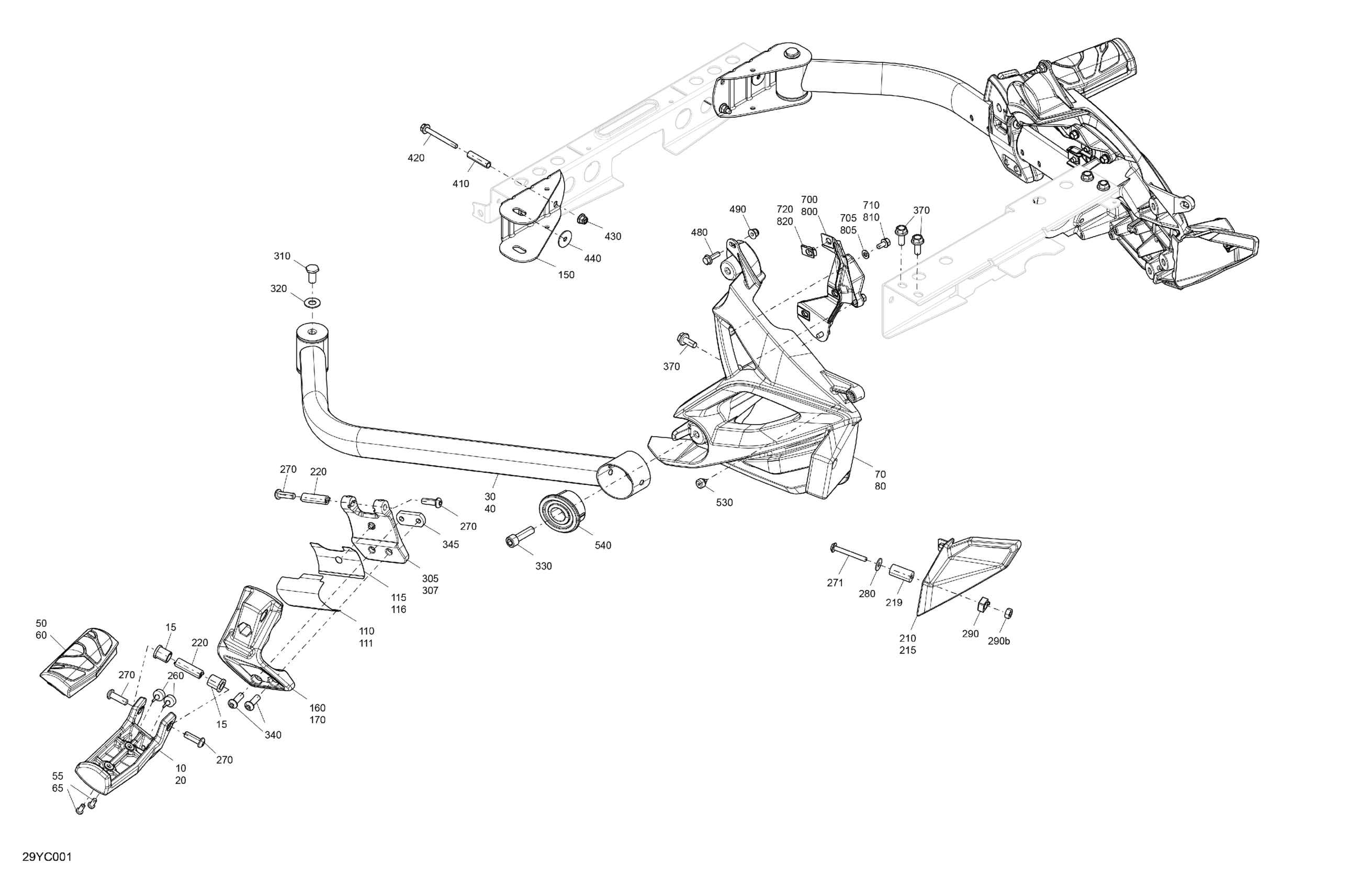 Can-Am F3 - Steel Black Metallic, 2023 Frame - Footrest Diagram