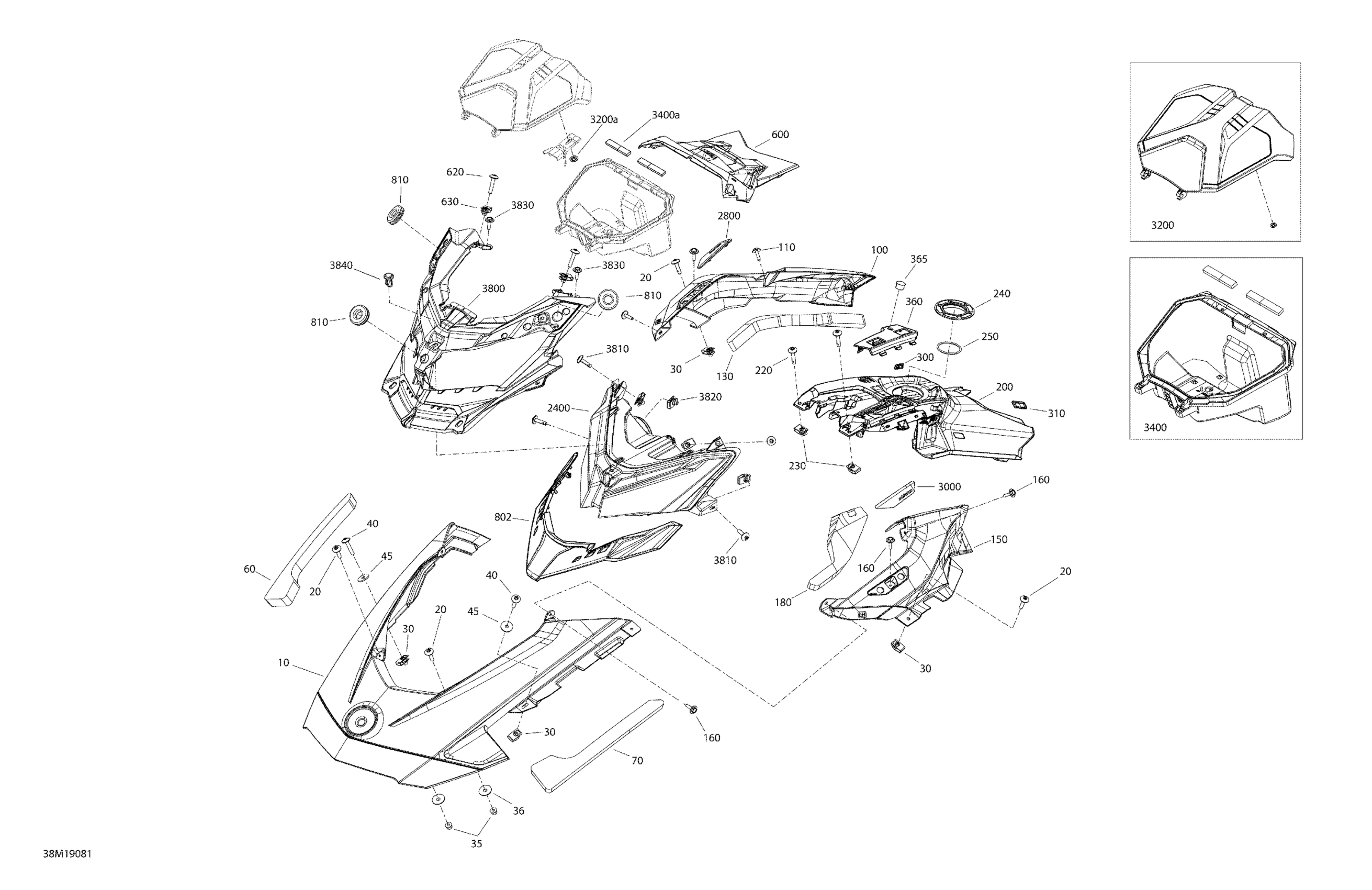 Ski-Doo FREERIDE 137 850 E-TEC, 2019 Hood - Hood Section Diagram