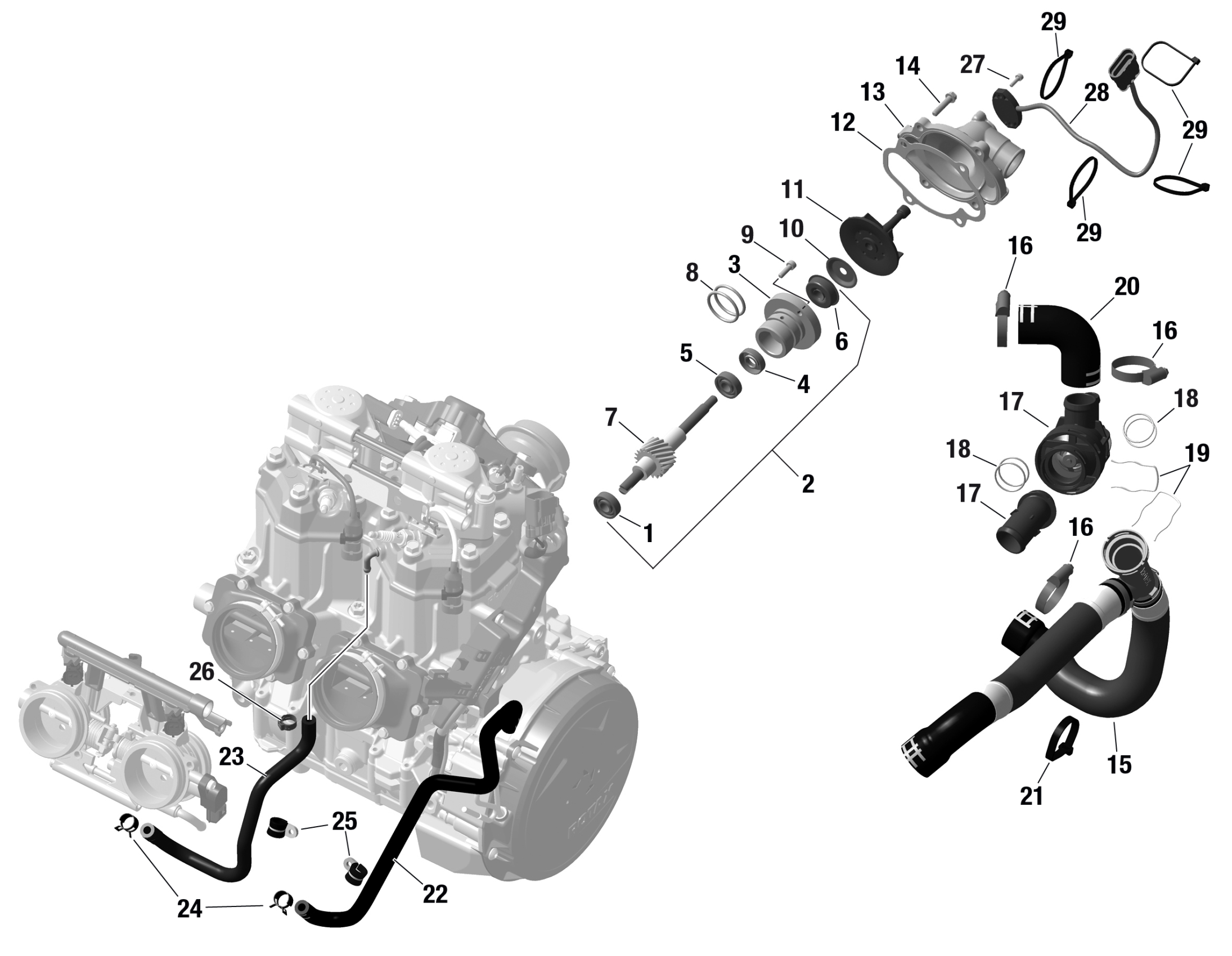 Ski-Doo FREERIDE 146 - 850 E-TEC - 2023 ROTAX - Engine Cooling - DSHOT Diagram