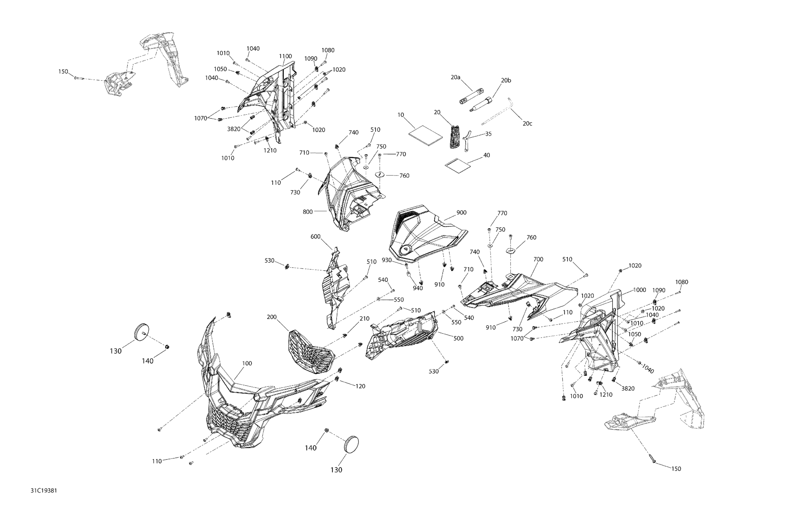 Can-Am Maverick Trail 800 - BASE_DPS - 2019 Body Maverick Trail - 800 - Front Section Diagram