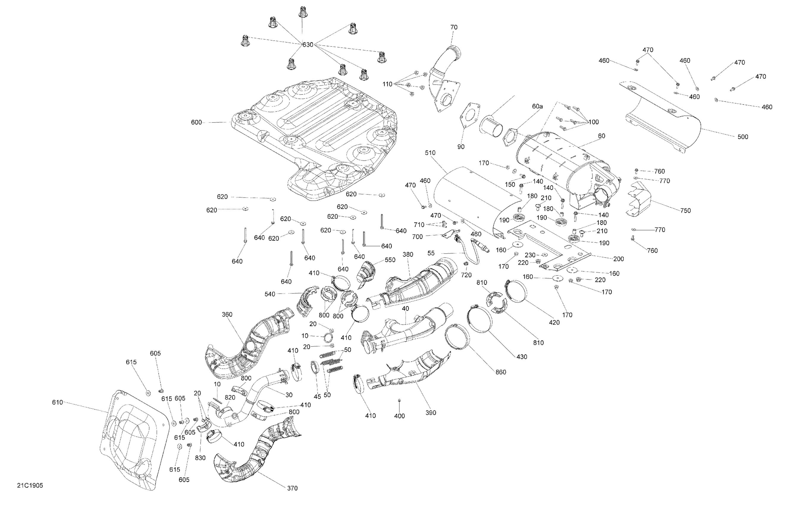 Can-Am Maverick Trail 800 - BASE/DPS - T2B Series, 2019 Exhaust Diagram