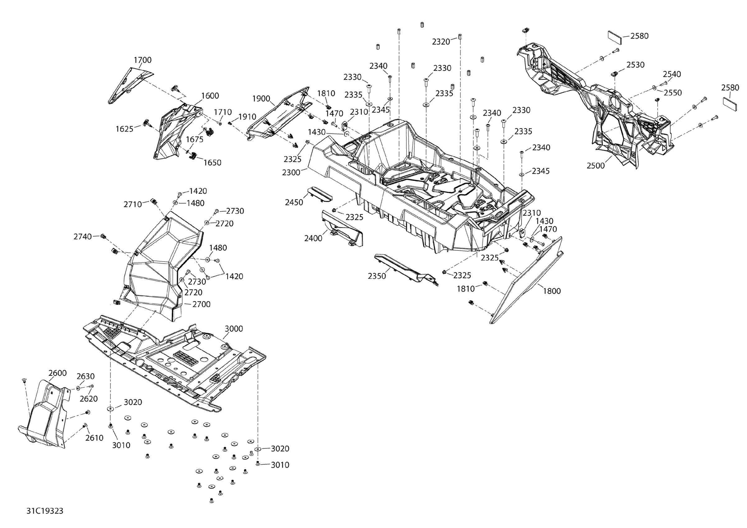 Can-Am Maverick Trail 800 - BASE/DPS - T2B Series, 2019 Body Maverick Trail - 800 - Red - Rear Section Diagram