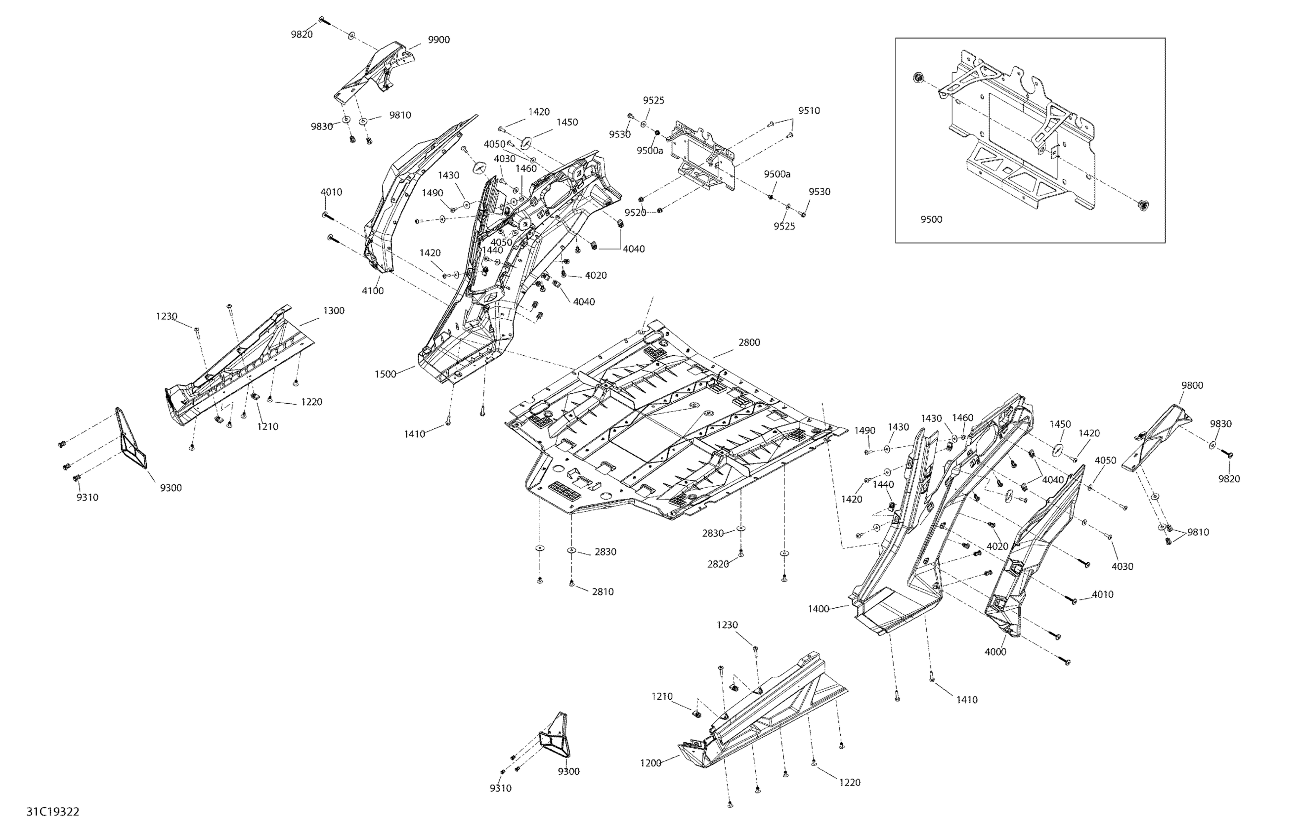 Can-Am Maverick Trail 800 - BASE/DPS - T2B Series, 2019 Body Maverick Trail - 800 - White - Middle Section Diagram