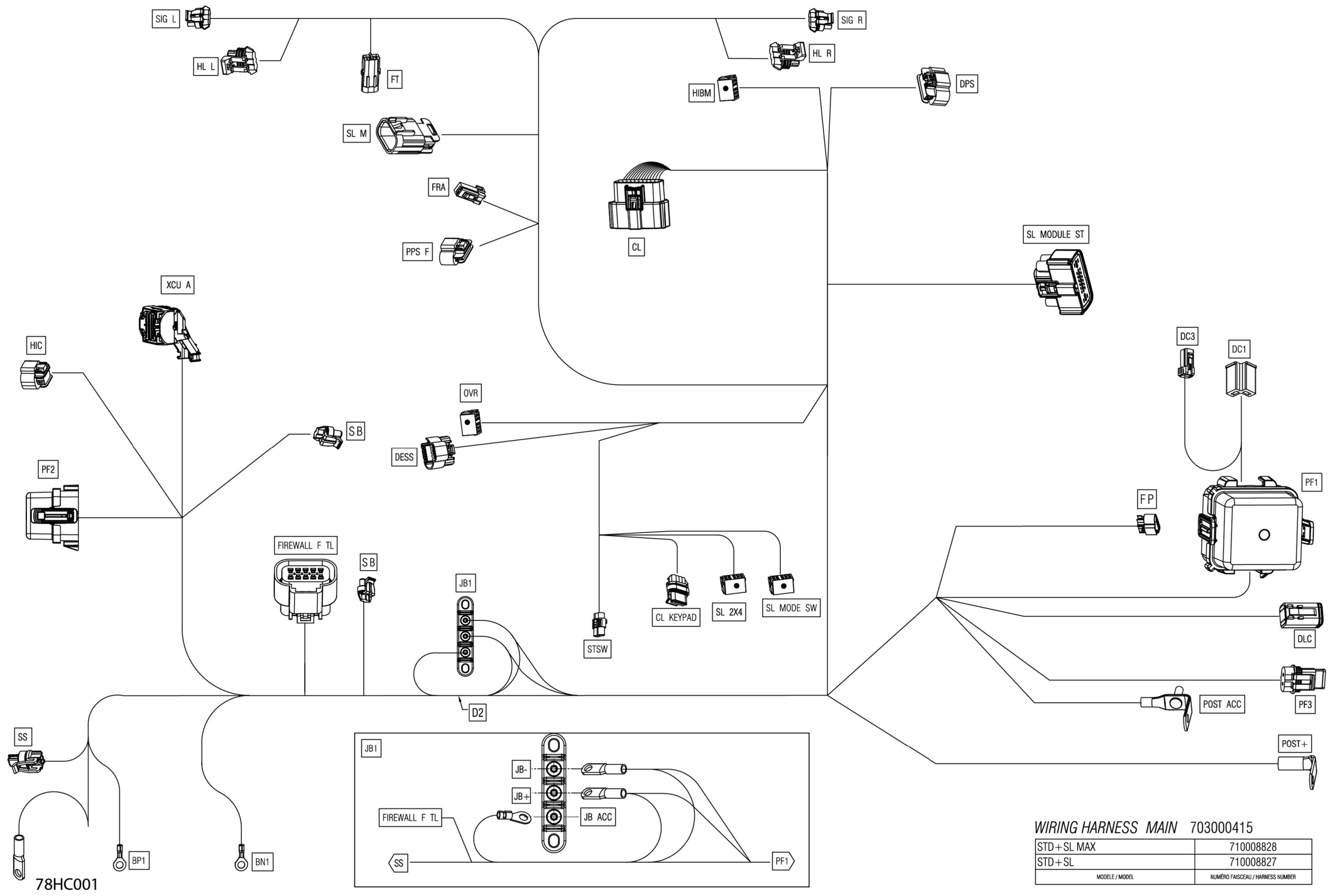 Can-Am 001 - Maverick Turbo - DS - North America, 2023 08- Electric - Main Harness - 710008827 Diagram