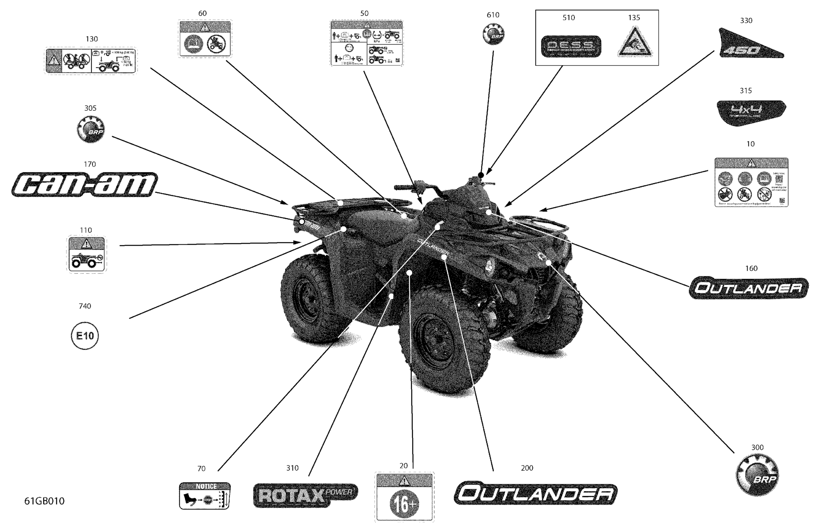 Can-Am Outlander 450 EFI - STD - CE, 2022 Body - Decals Diagram