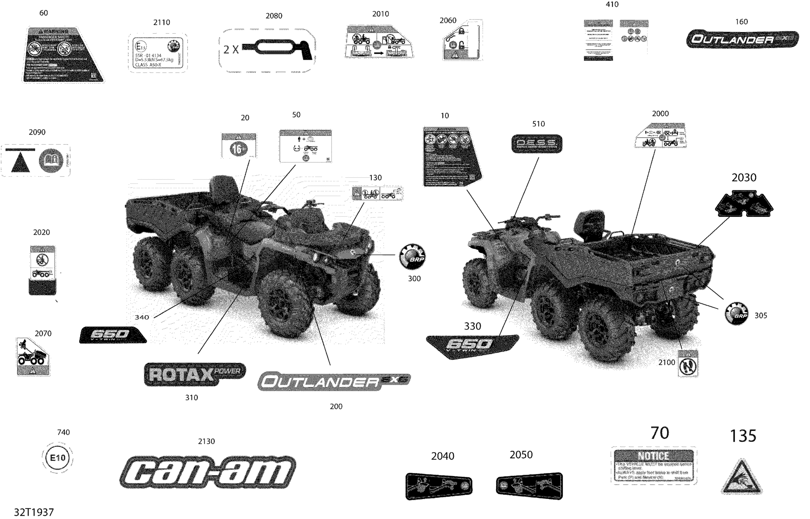 Can-Am Outlander 6X6 - 650 EFI - International, 2019 Decals Outlander 6X6 - 650 EFI - DPS - International Diagram