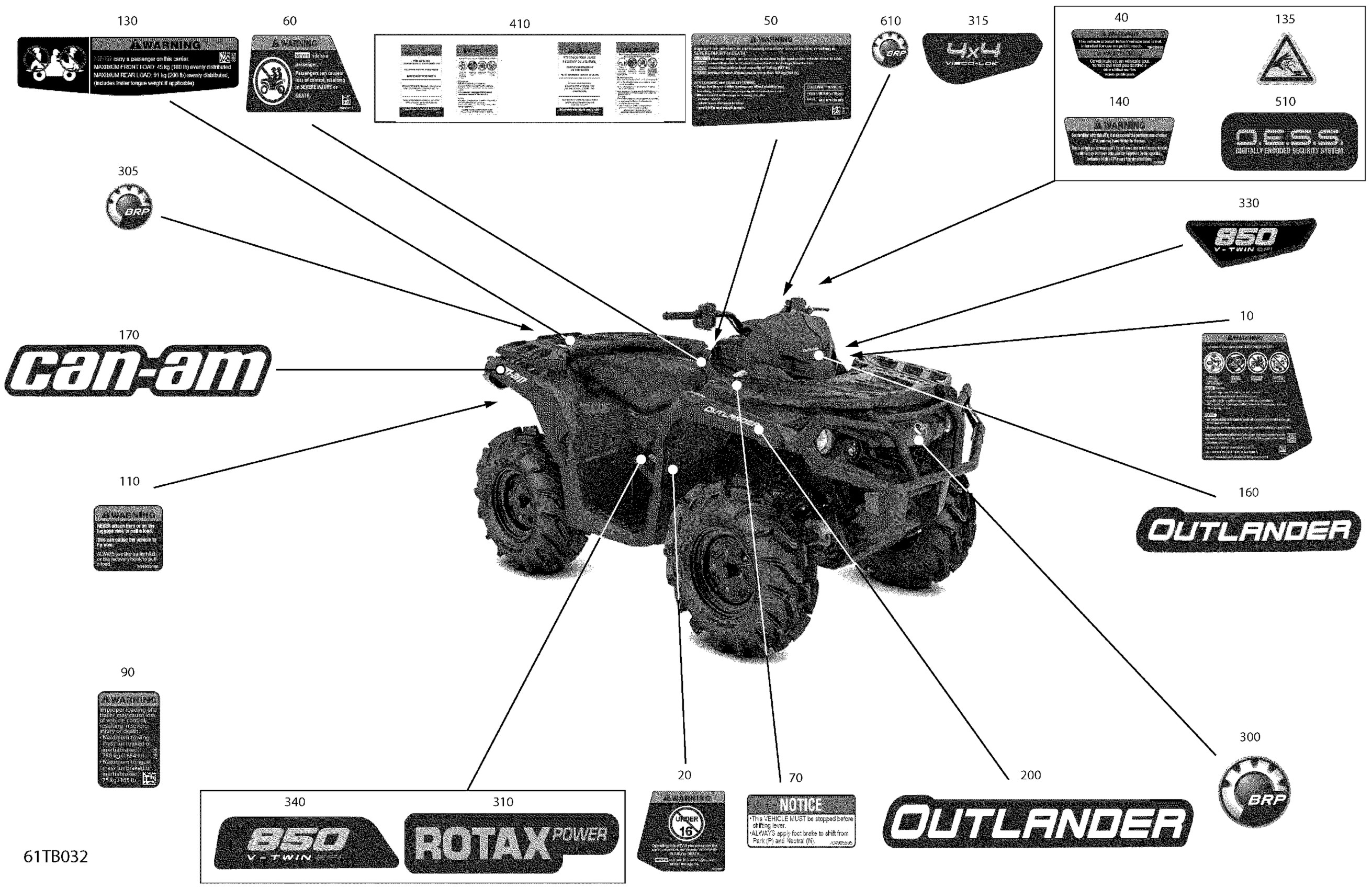 Can-Am 001 - Outlander 850 EFI - STD - North America, 2022 07- Body - Decals Diagram