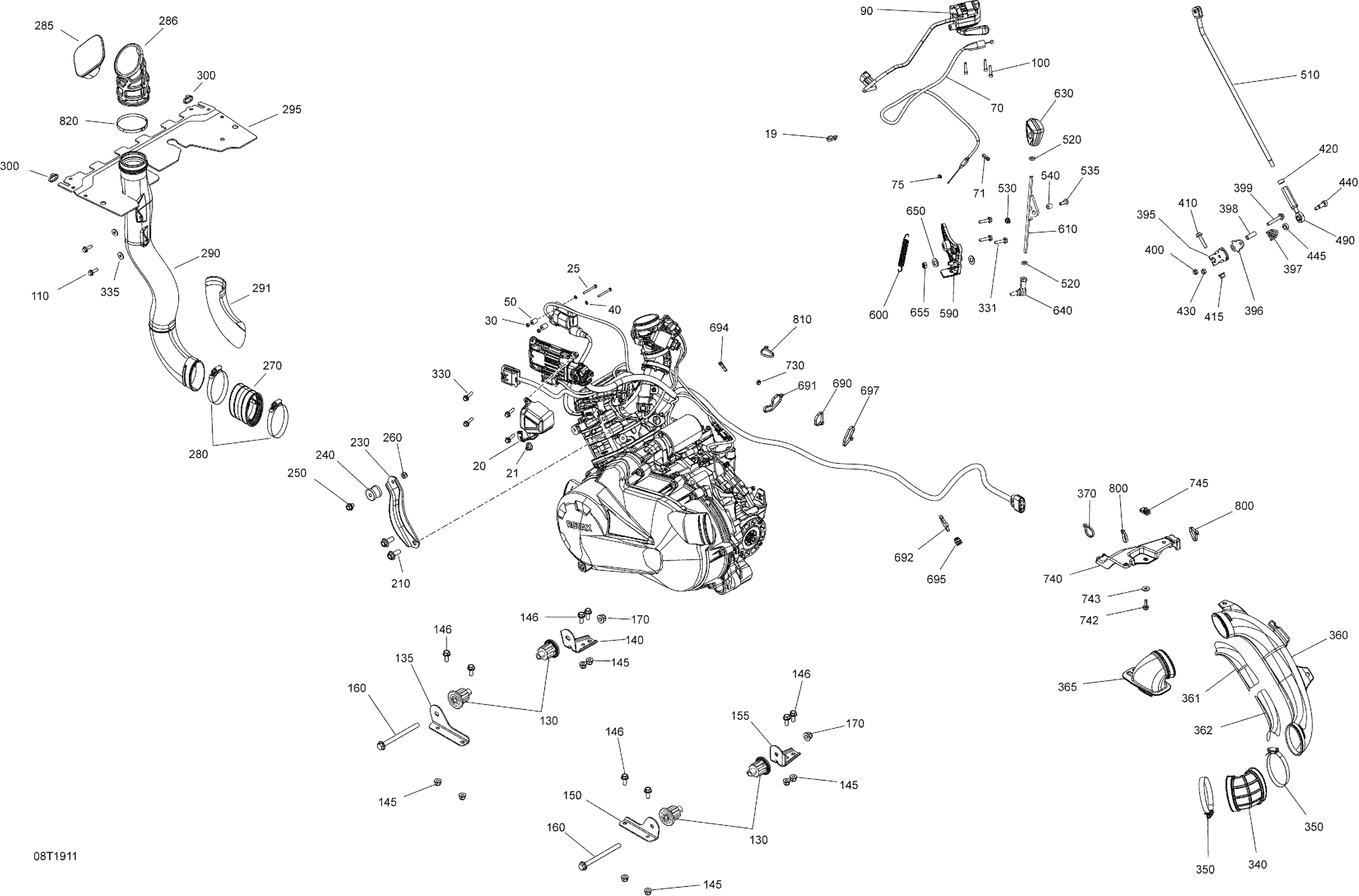 Can-Am Outlander MAX 6X6 - 450 EFI - 2019; Engine - 450 EFI - 6X6 Diagram