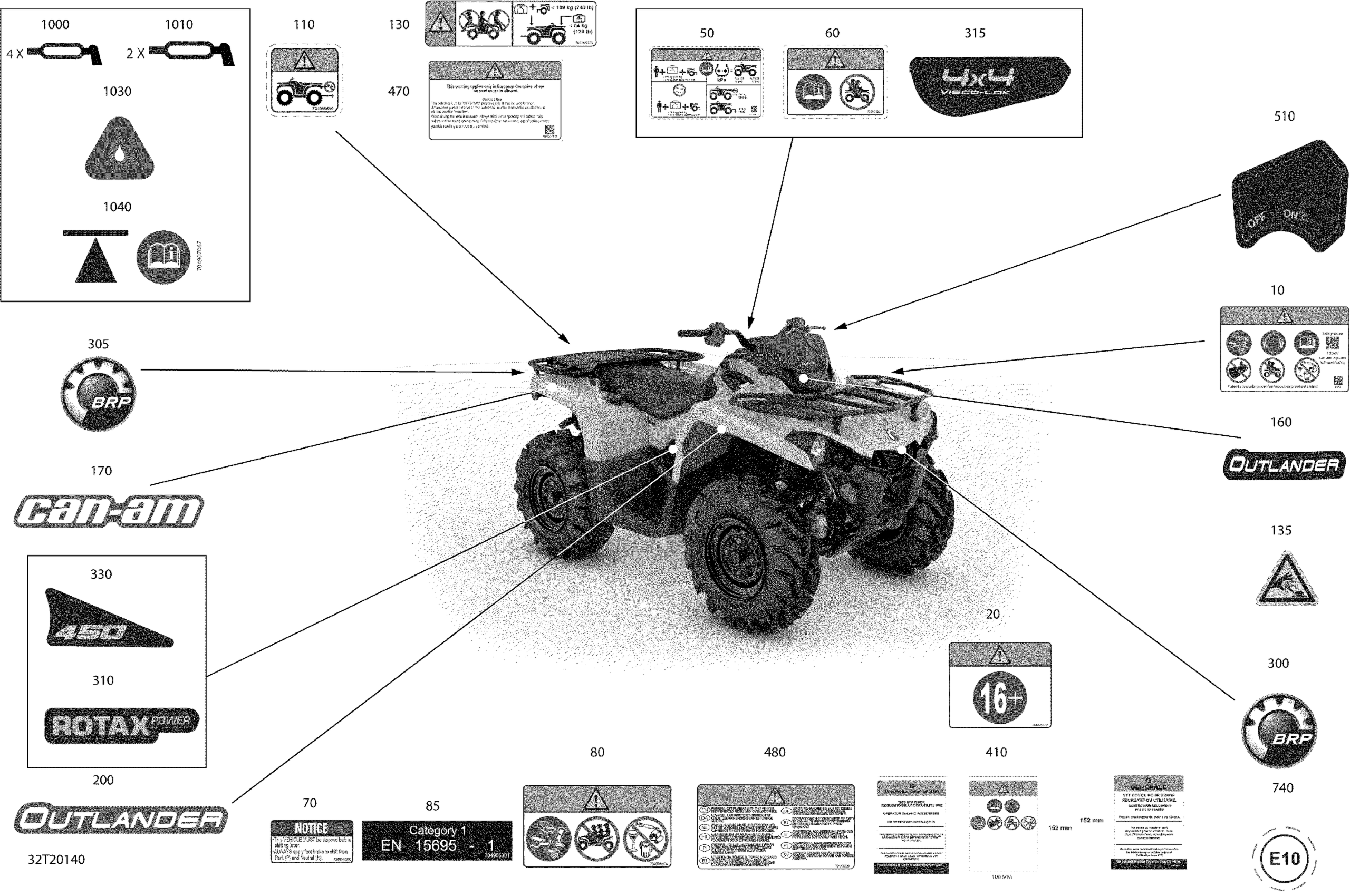 Can-Am Outlander T 450 EFI - T Regulation, 2020 Decals - STD Diagram