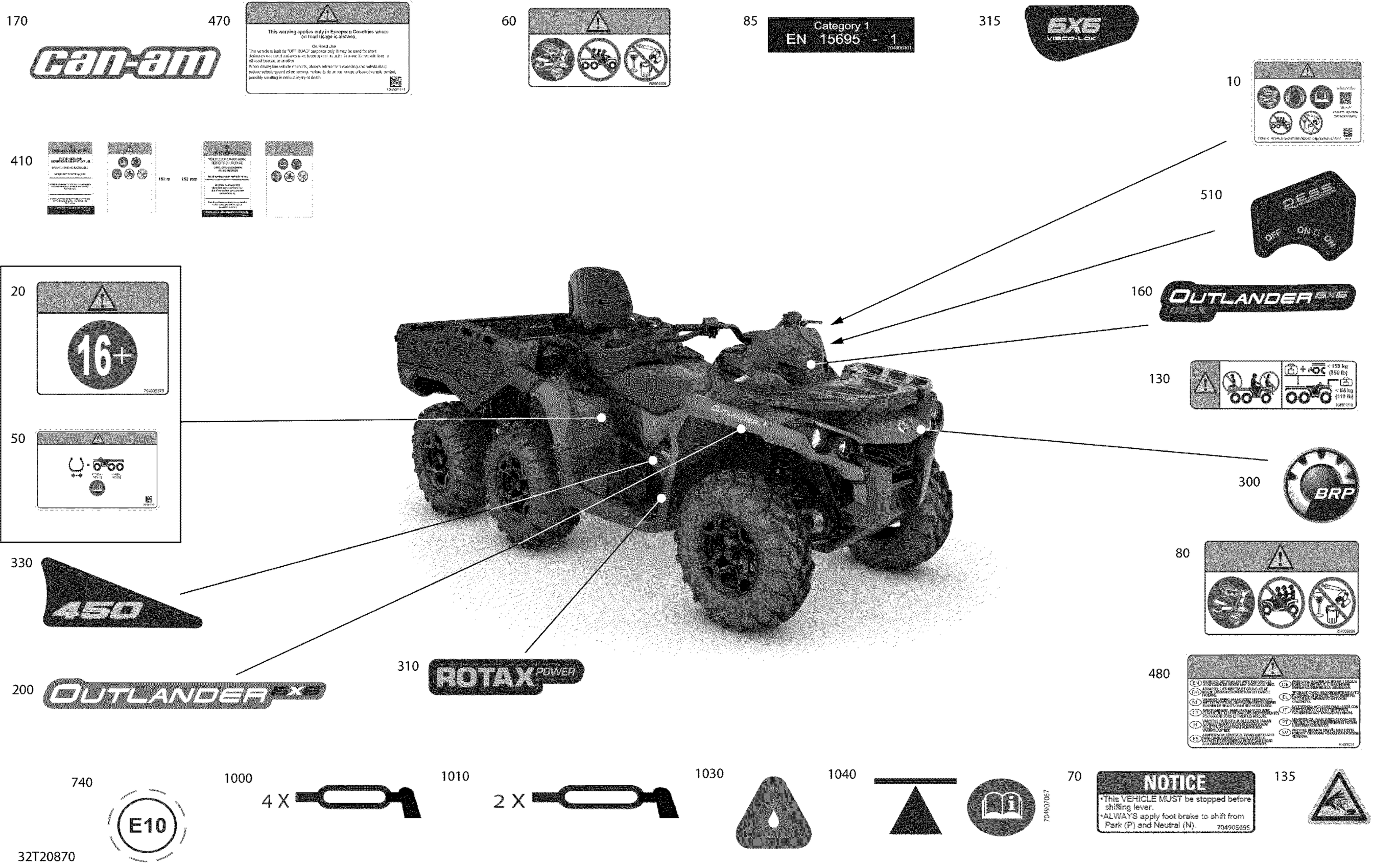 Can-Am Outlander T 6X6 - 450 EFI - T Regulation, 2020 Decals - STD Diagram