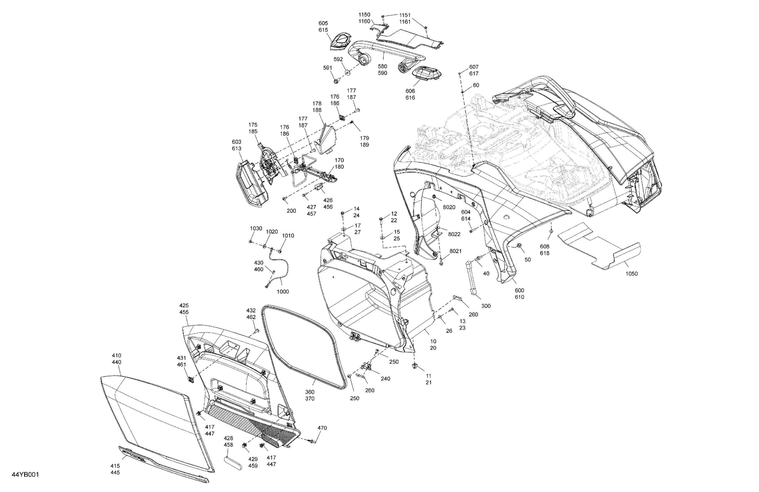 Can-Am RT - Hyper Silver, 2022 Body - Side Cargo Diagram