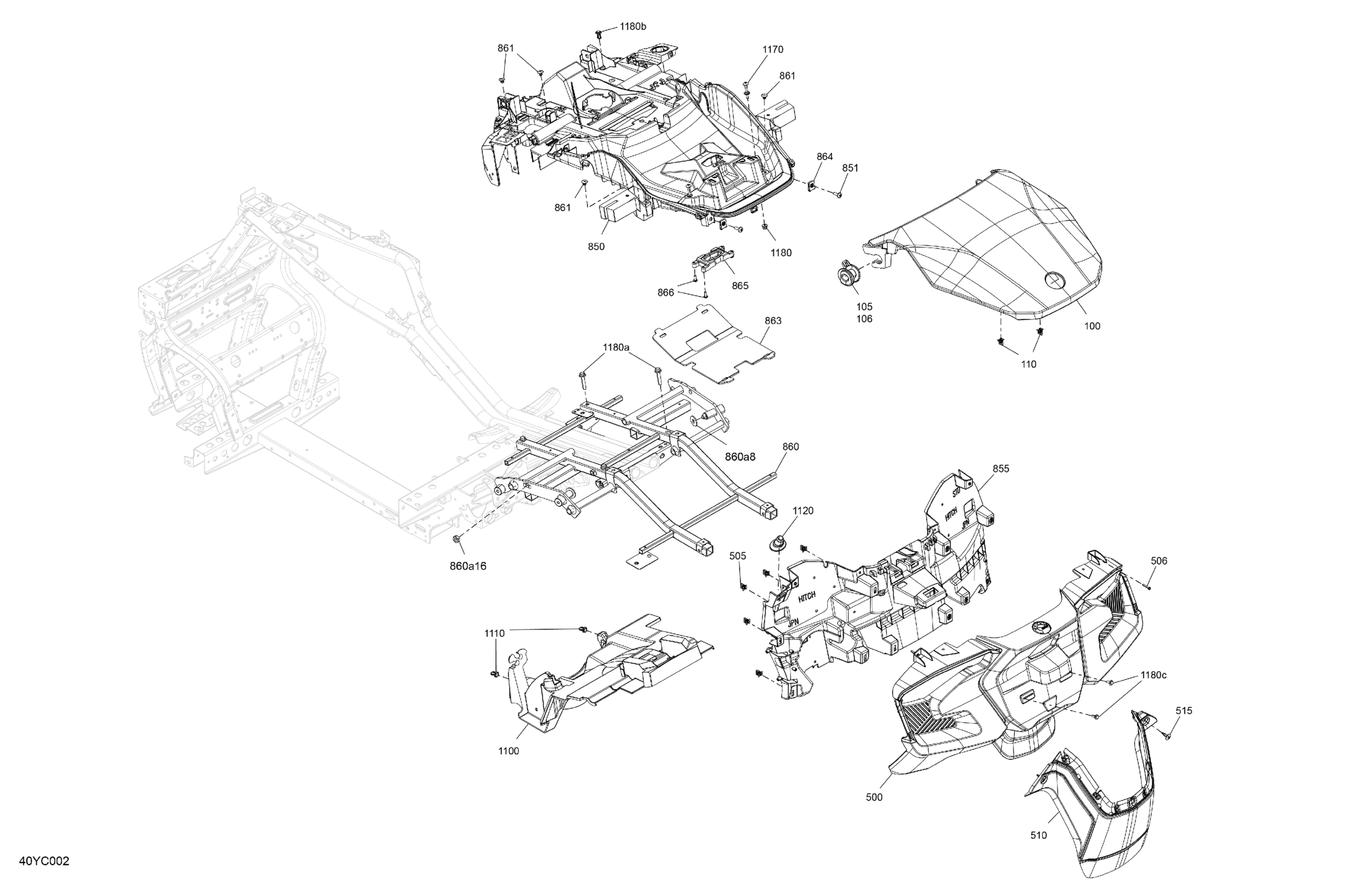 Can-Am RT - Hyper Silver, 2023 Body - Cargo Structure And Rear Fenders Diagram