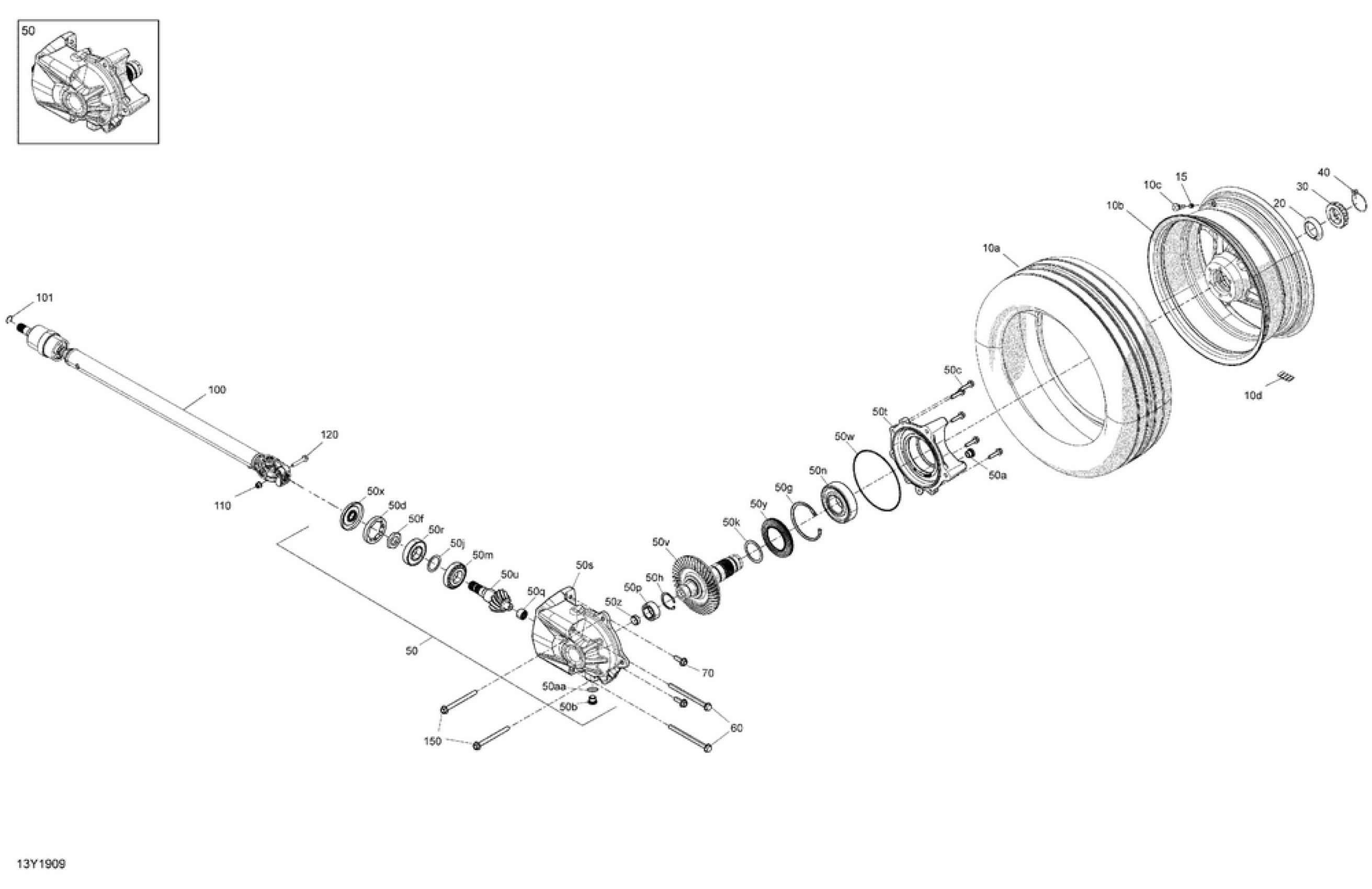 Can-Am RYKER STD 600 ACE, 2019 Drive System, Rear Drive Shaft & Final Drive + Wheel + Tire Diagram