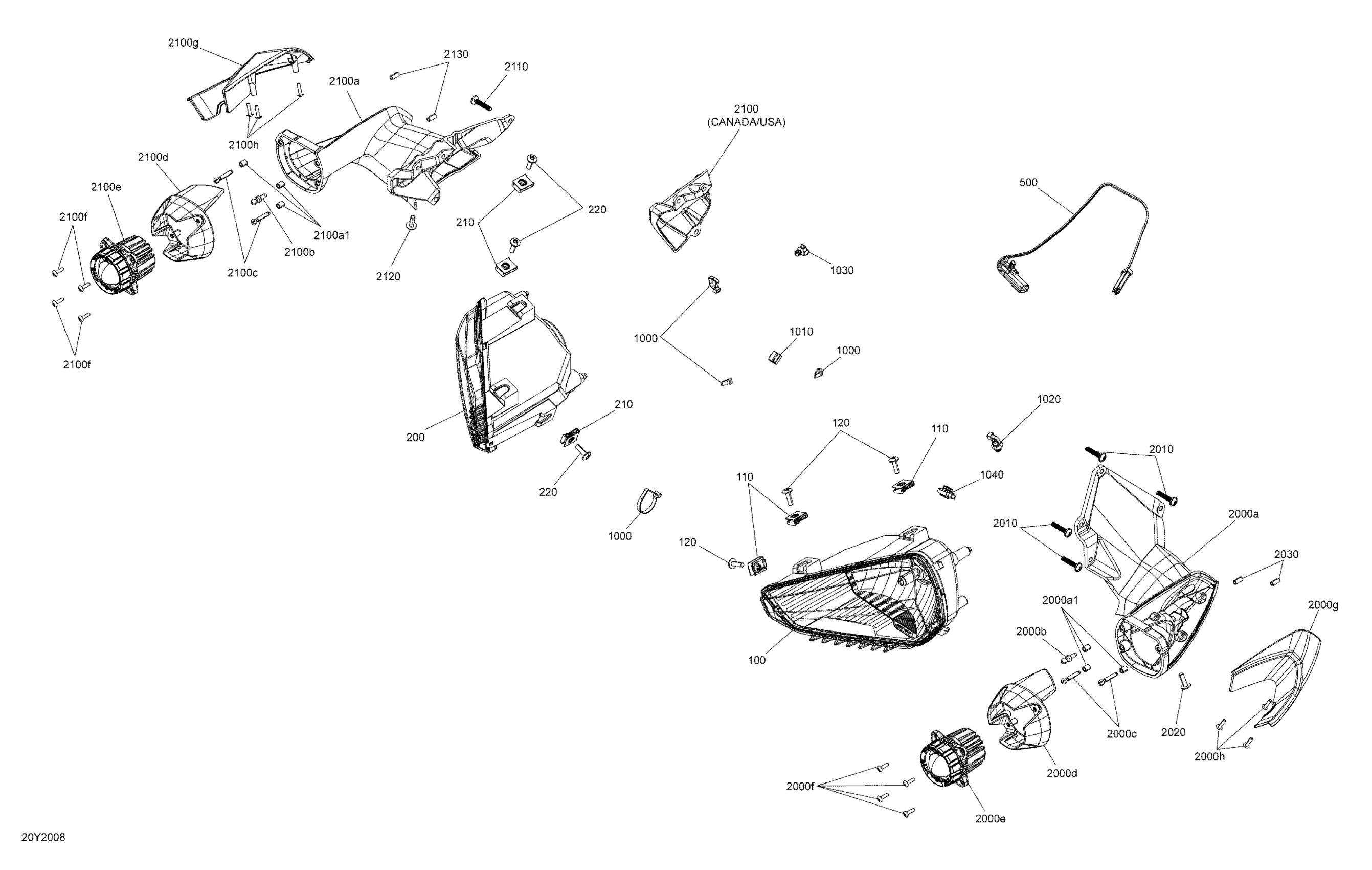 Can-Am On-Road 001 - RYKER STD 600 ACE, 2020 10- Electrical System Headlights and DESS Switch Diagram