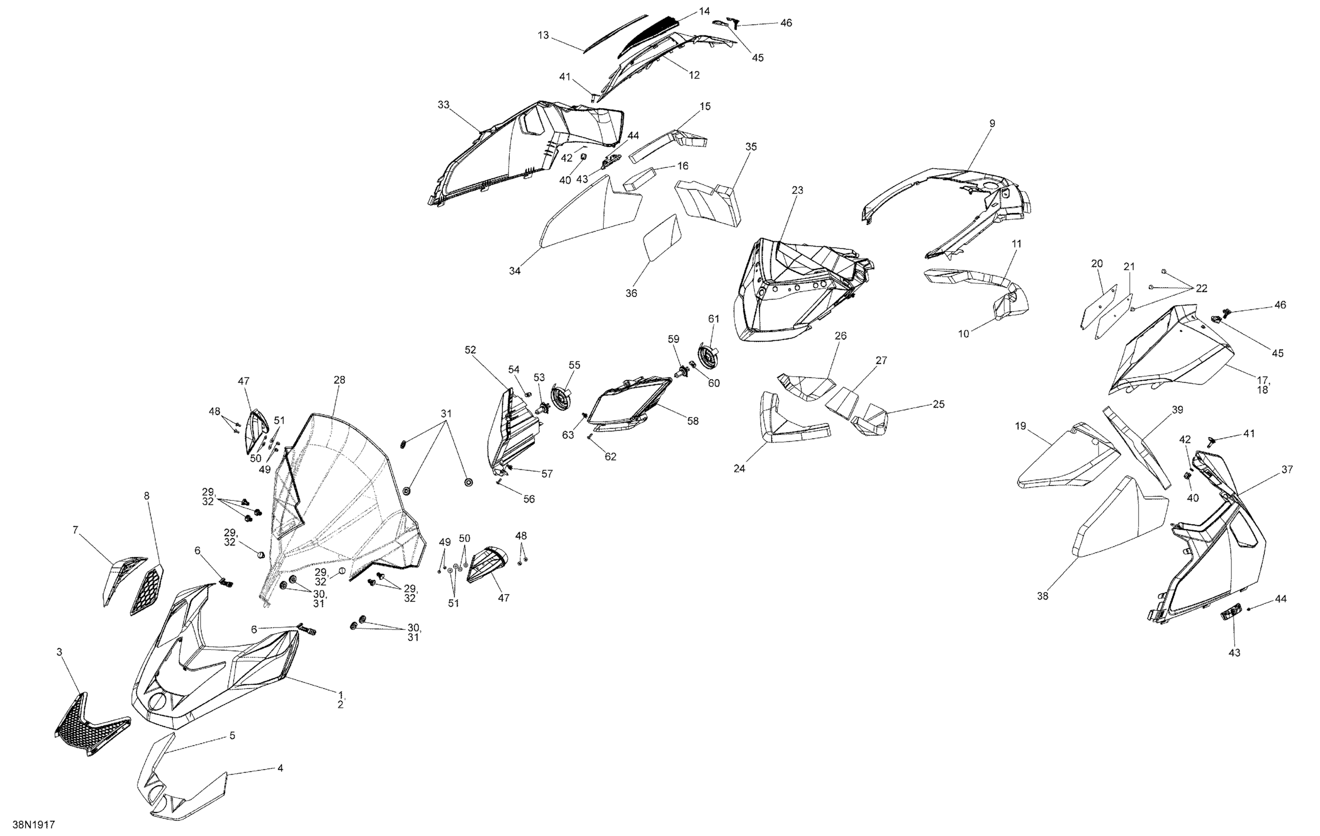 Ski-Doo Skandic WT 550F, 2019 Hood Diagram