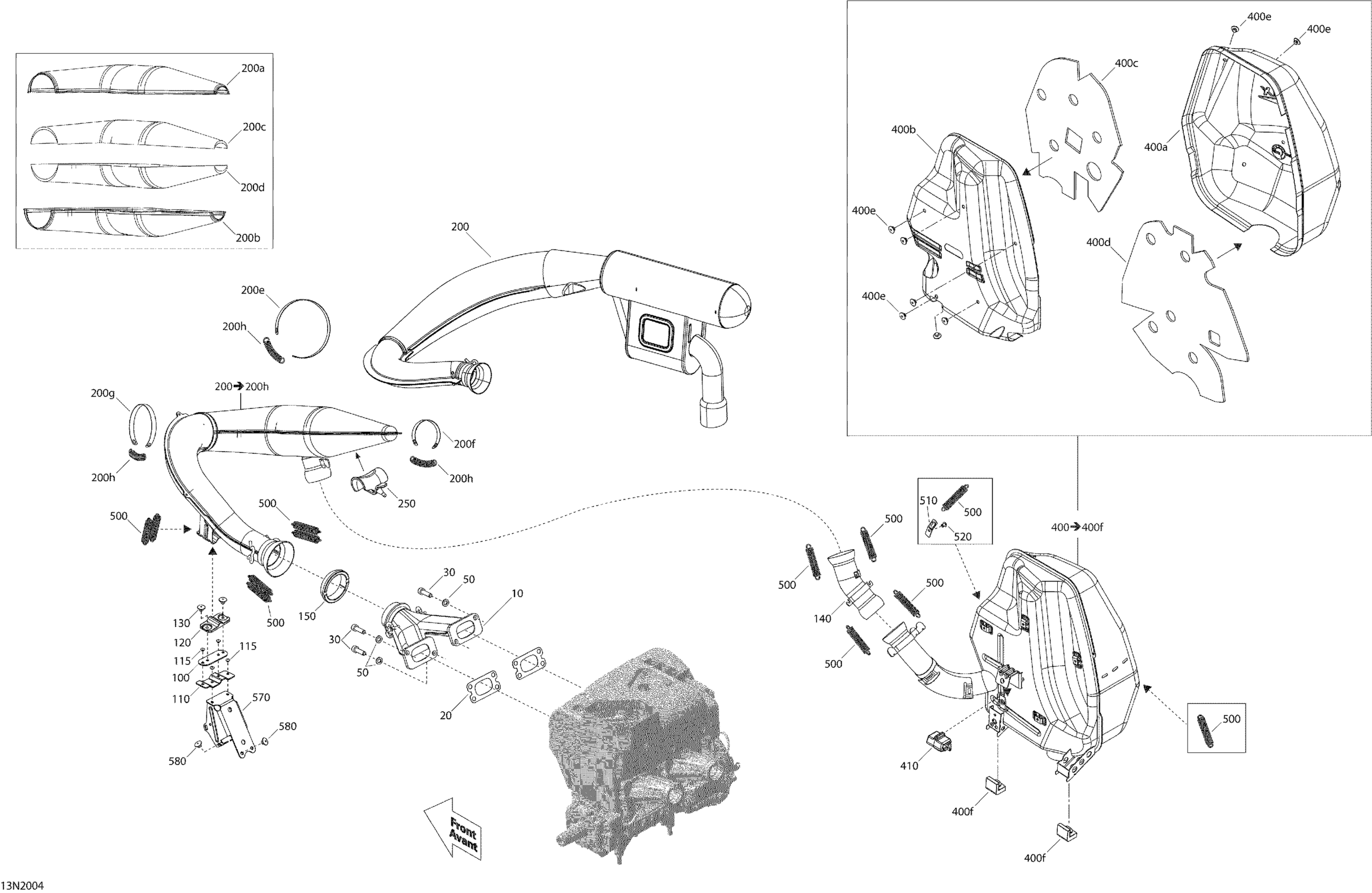Ski-Doo 001 - SKANDIC WT 550F - North America, 2020 02- Engine - Exhaust Diagram