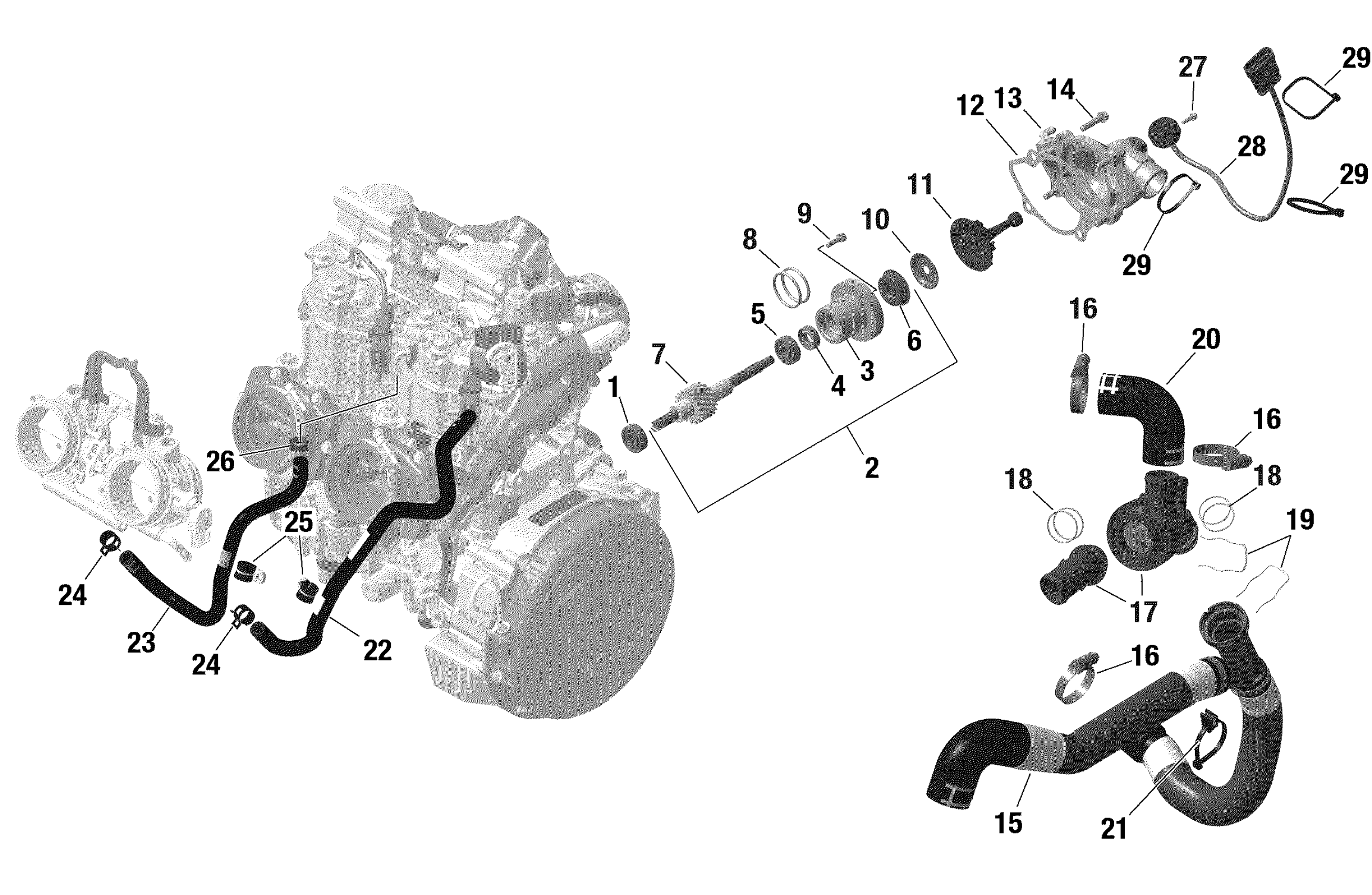 Ski-Doo SUMMIT 600R E-TEC - SP - 2021 Rotax - Engine Cooling Shot Diagram