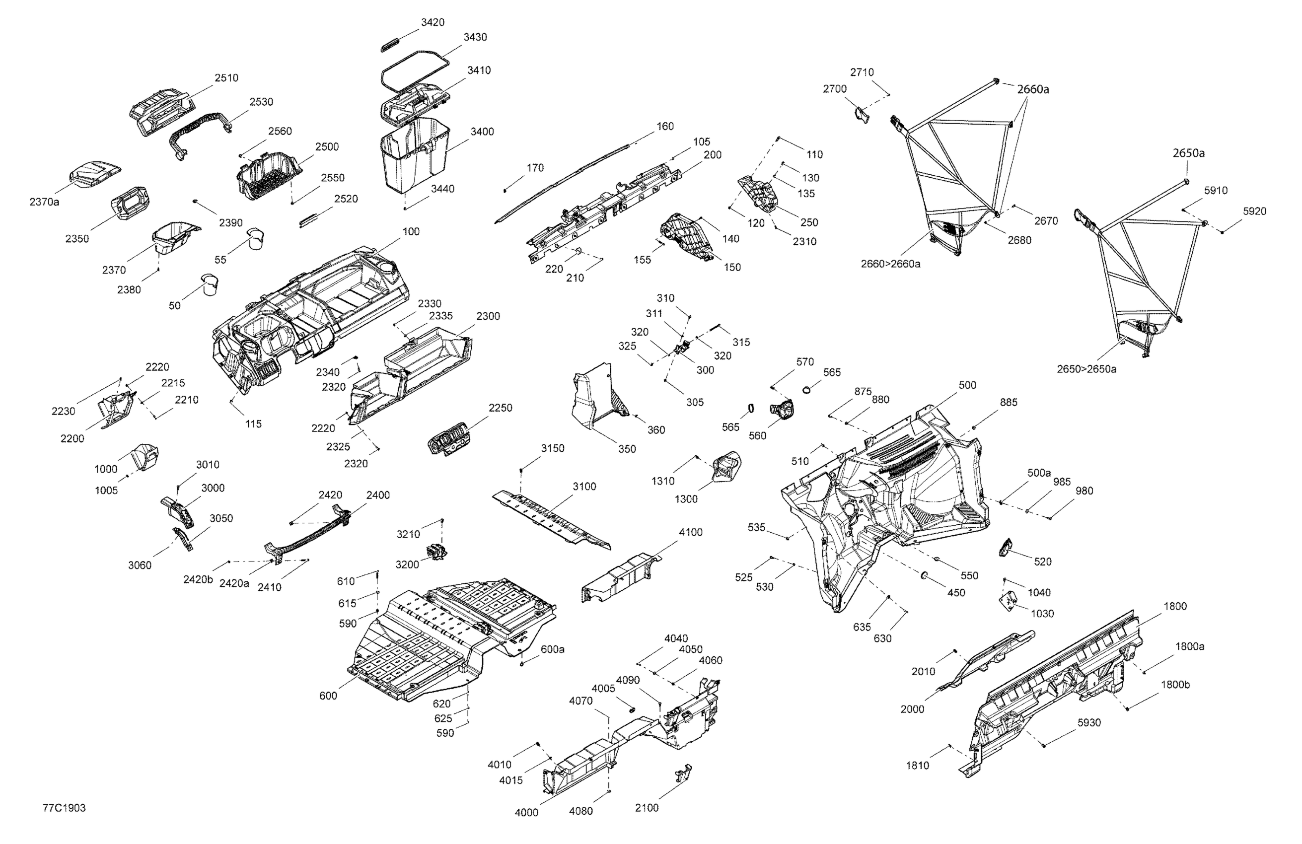 Can-Am Traxter HD5 - T1B Series, 2019 Cab Interior Traxter - HD5 Diagram