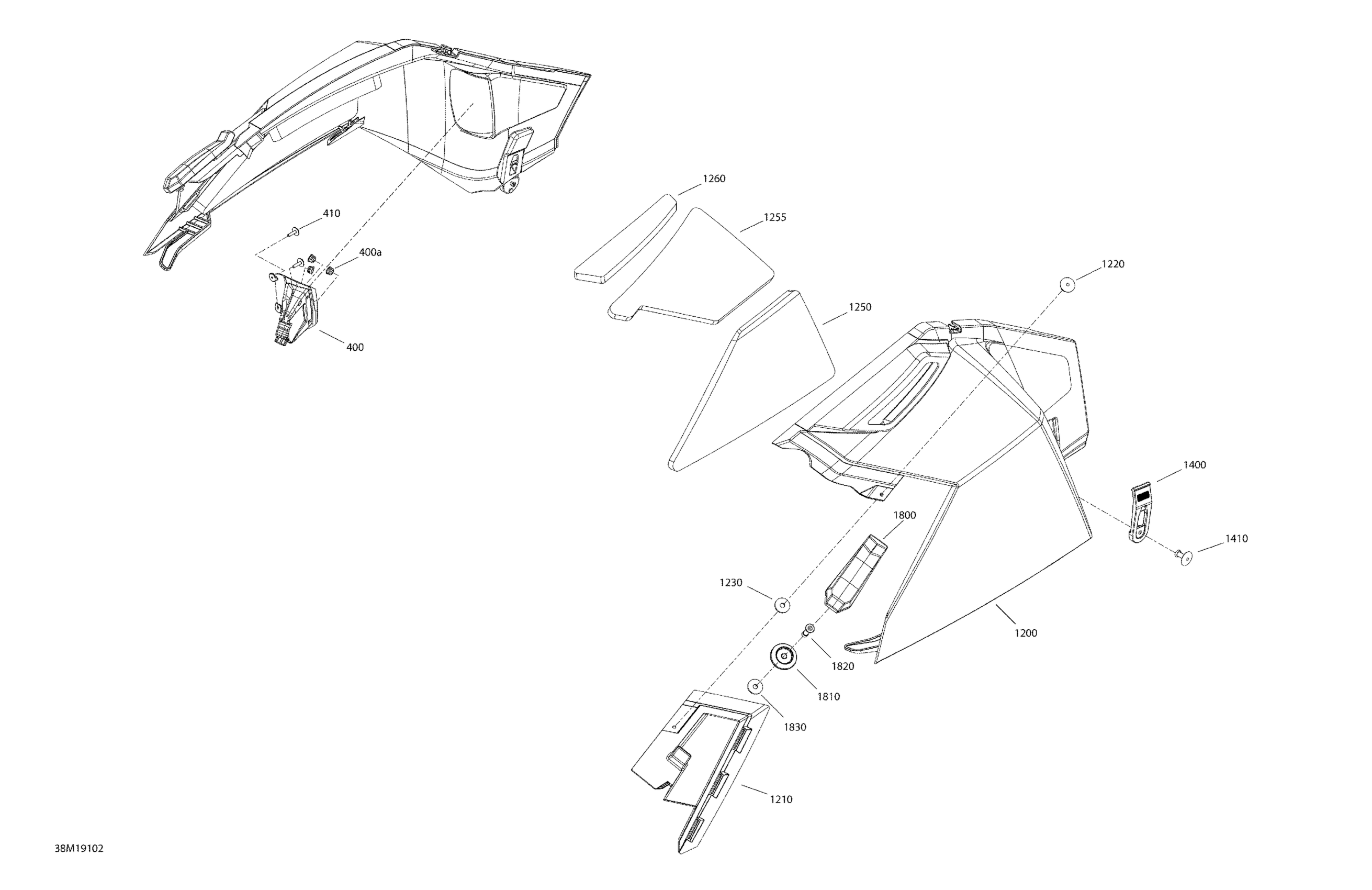 Ski-Doo Tundra 550F, 2019 Hood - Panel Section Diagram