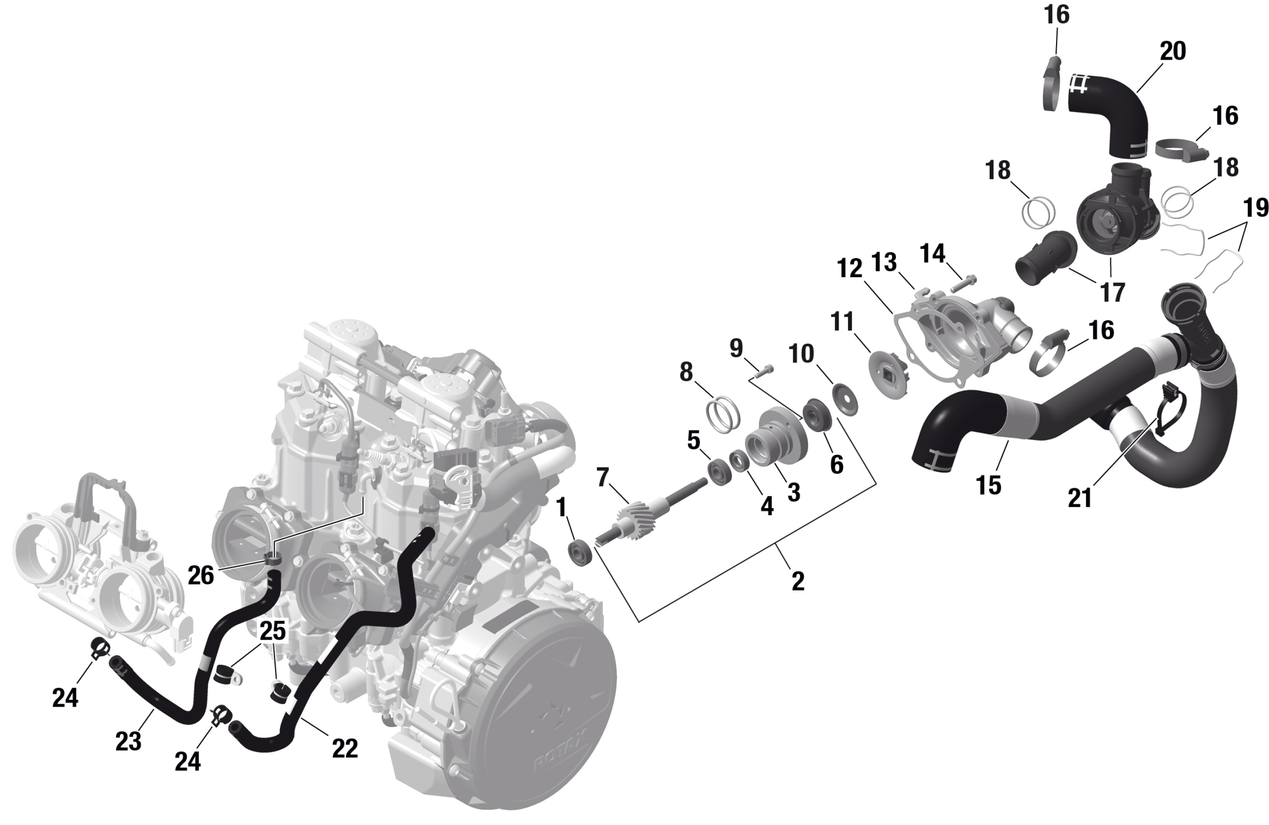 Ski-Doo BACKCOUNTRY 600R E-TEC - STD - 2023 ROTAX - Engine Cooling Diagram