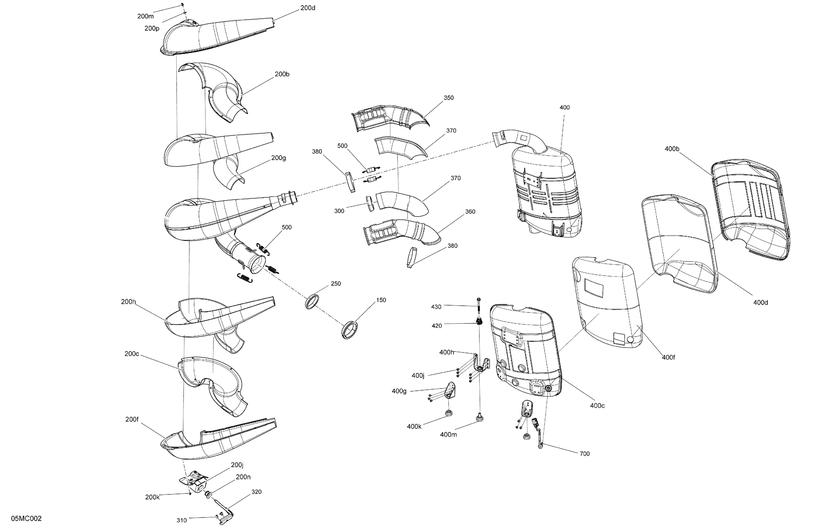 Ski-Doo 002 - BACKCOUNTRY 600R E-TEC - STD - North America, 2023 02- Engine - Exhaust Diagram