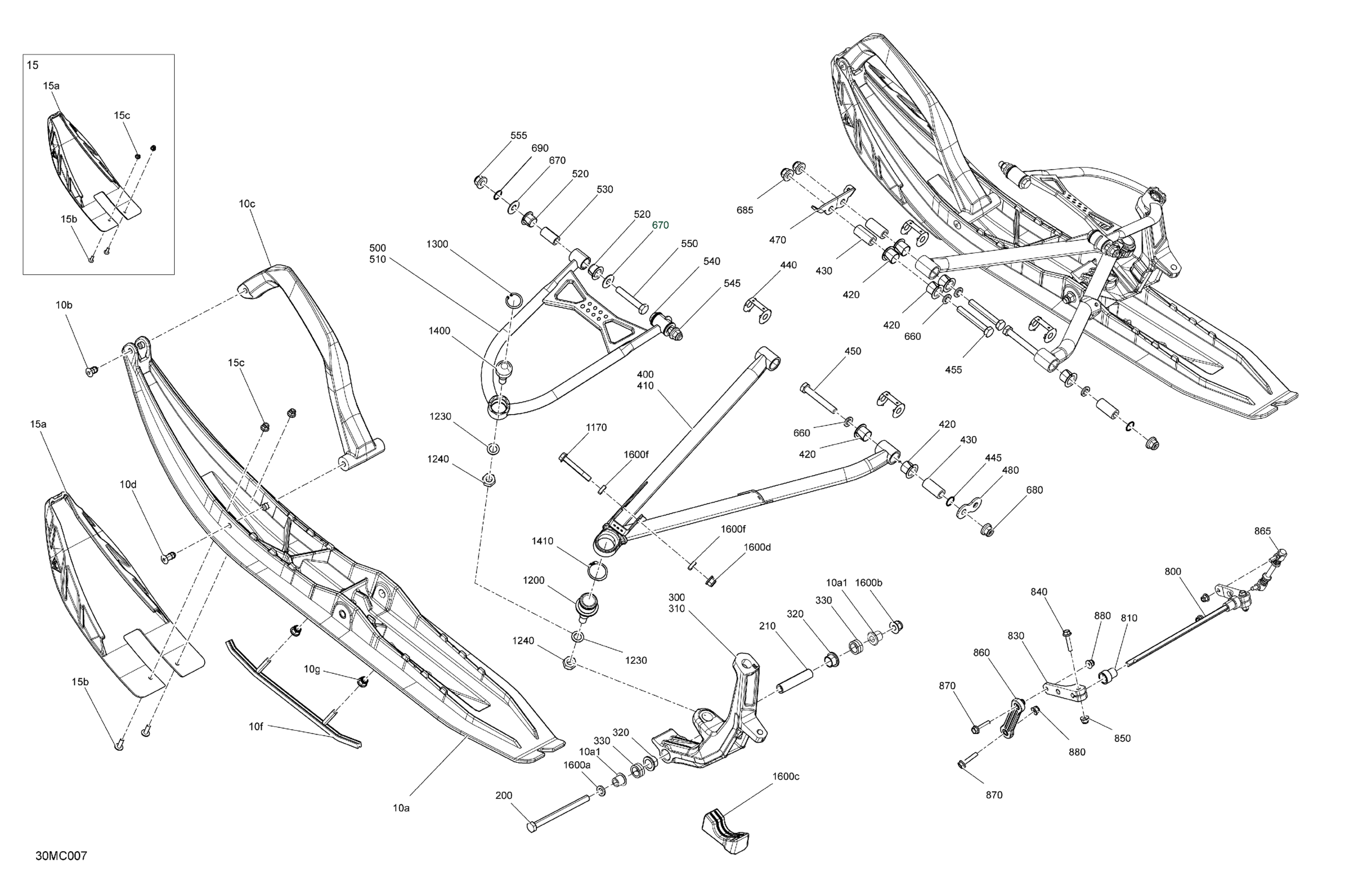 Ski-Doo 002 - FREERIDE 154 - 850 E-TEC - North America, 2023 05- Suspension - Front Diagram