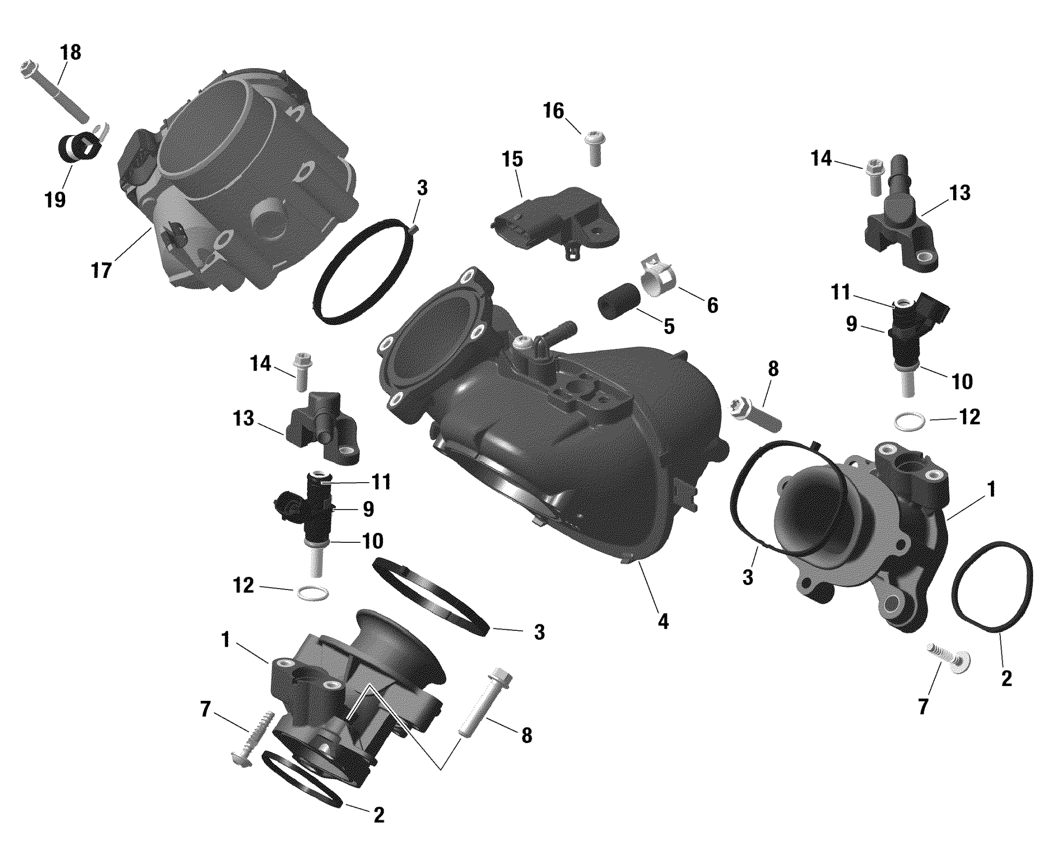 Can-Am Maverick Sport 1000 - BASE - 2021 Rotax - Air Intake Manifold And Throttle Body Diagram