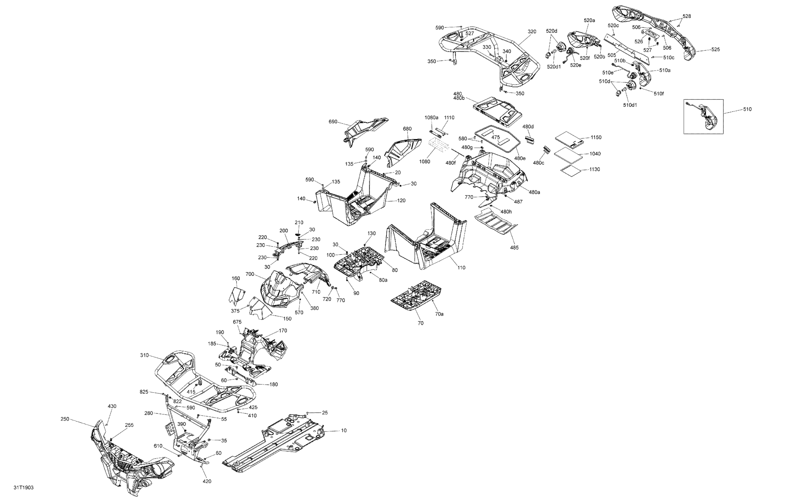 LH Rear Light Support Ass'y | Includes 510 to 510g