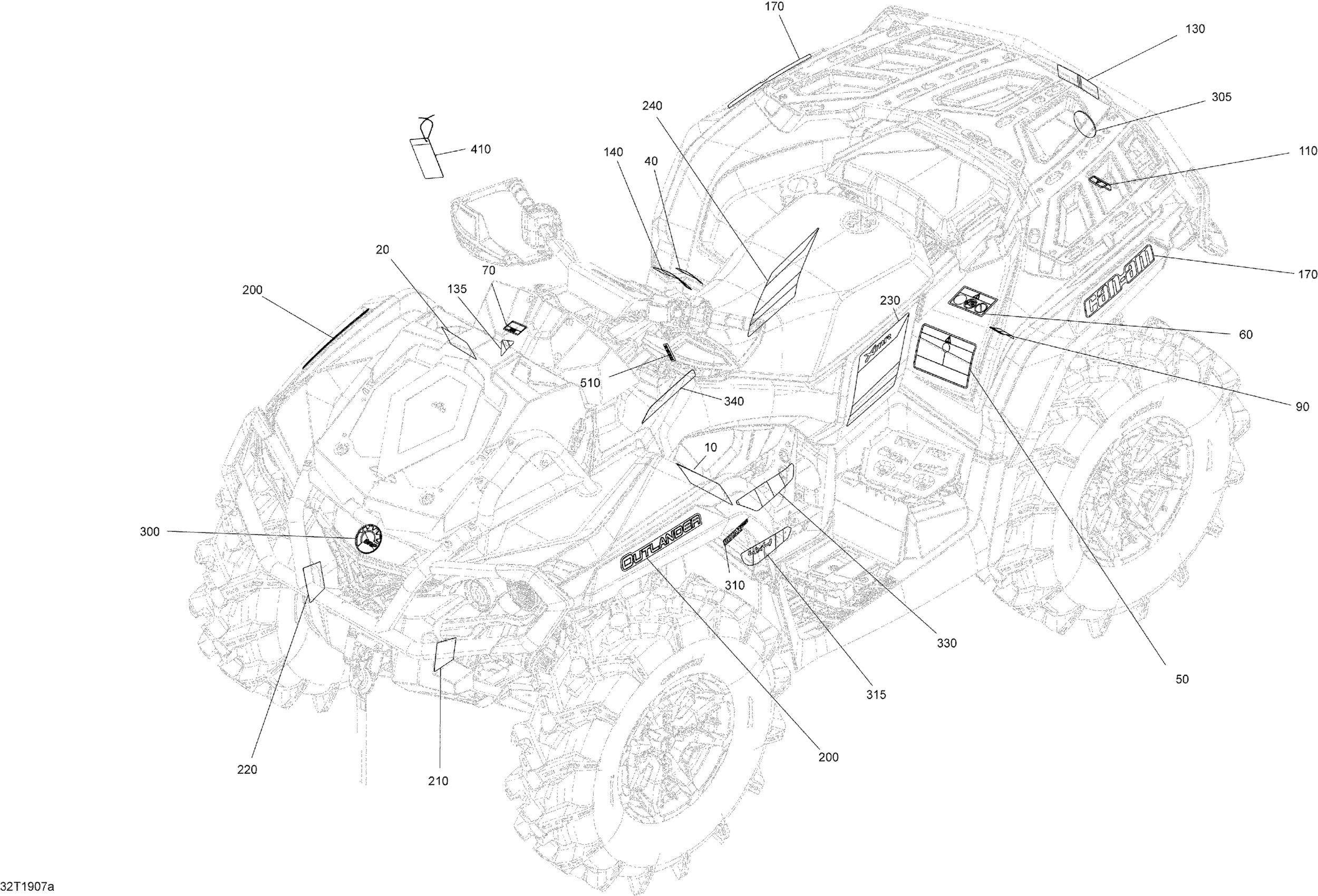 Can-Am Outlander 570 EFI - 2019 Decals XMR Diagram