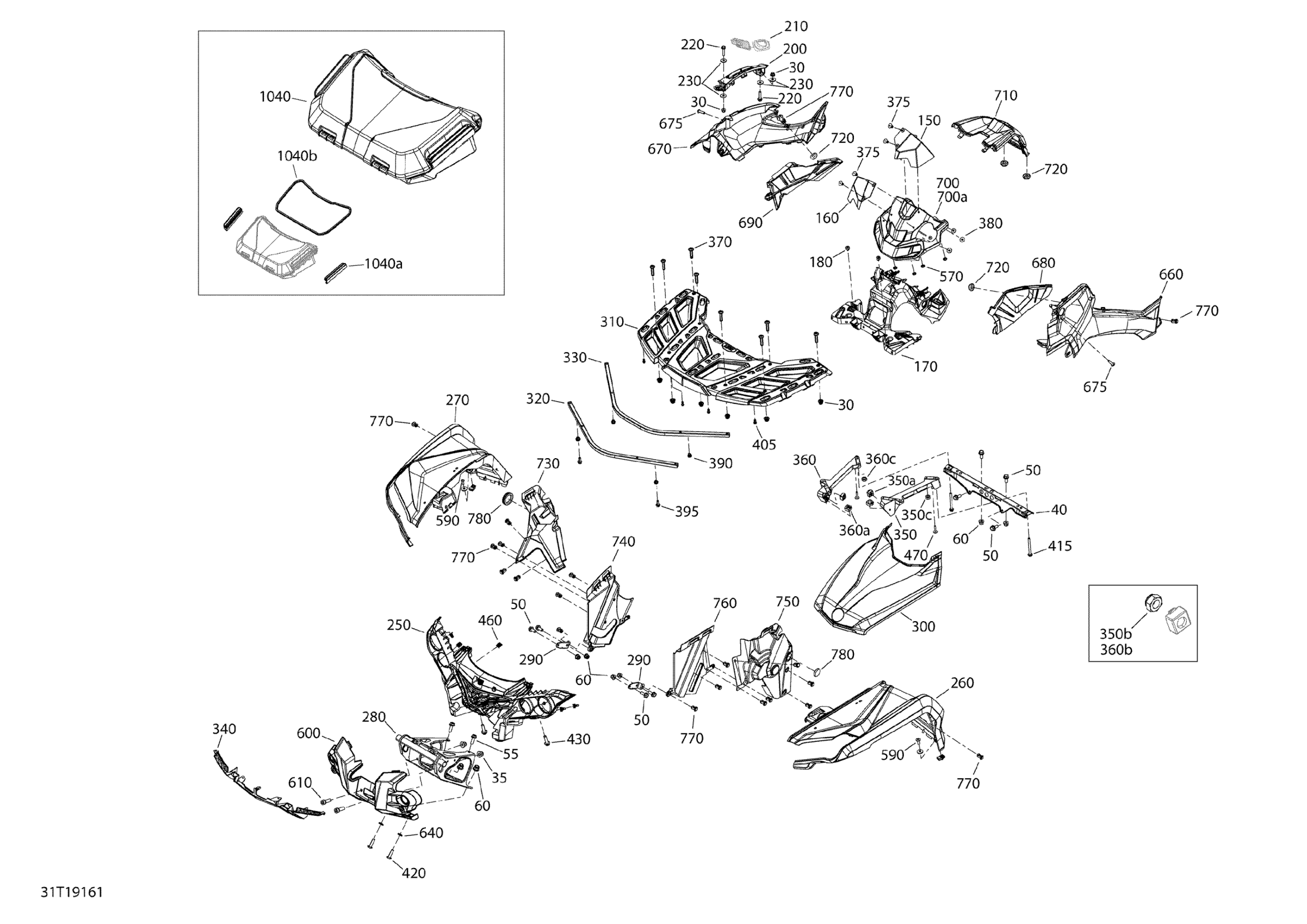 Can-Am Outlander 6X6 - 650 EFI - T3, 2019 Body And Accessories 6X6 - 650 EFI - Squadron Green - Front Diagram