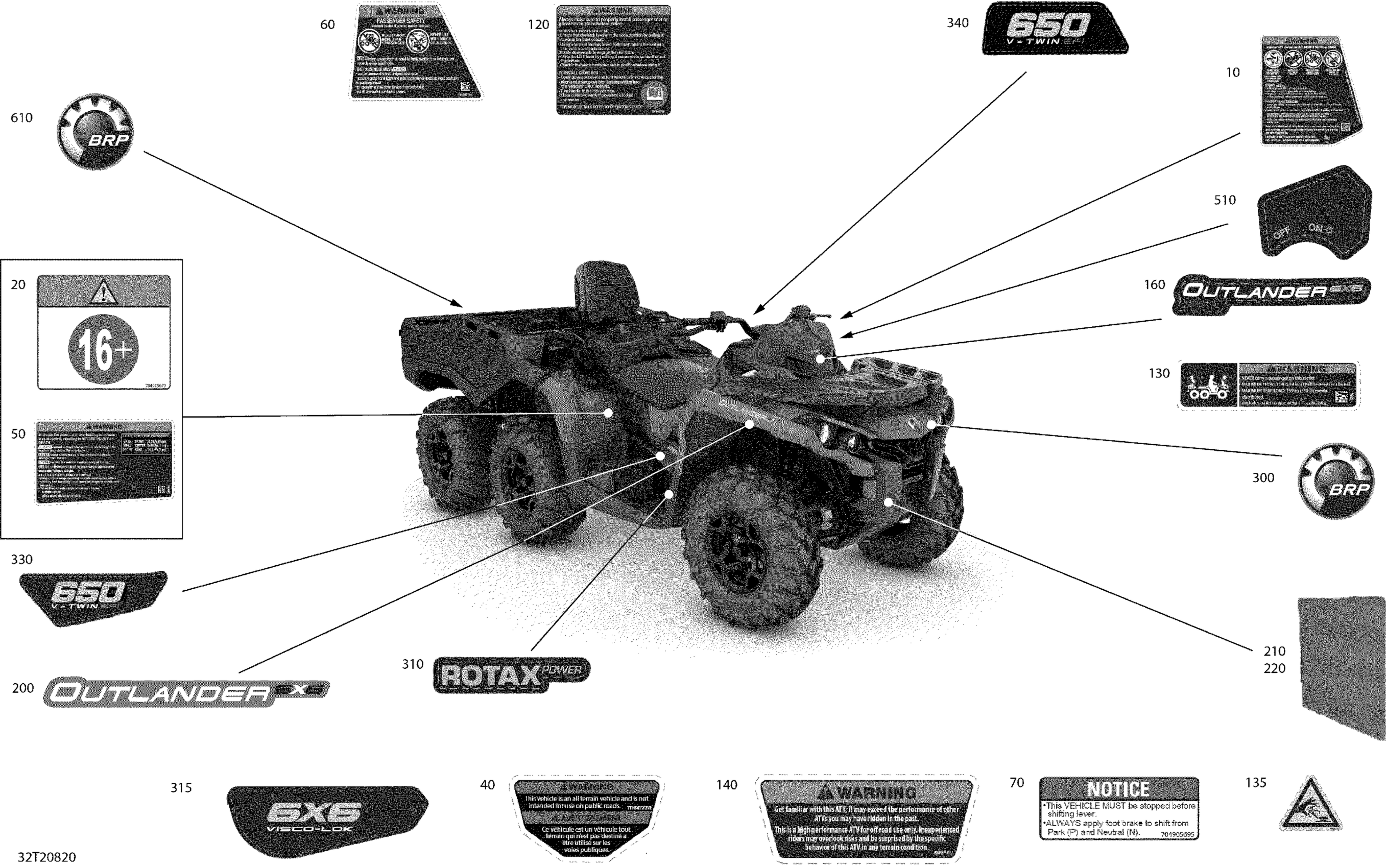 Can-Am Outlander MAX 6X6 - 650 EFI - 2020 Decals - DPS Diagram