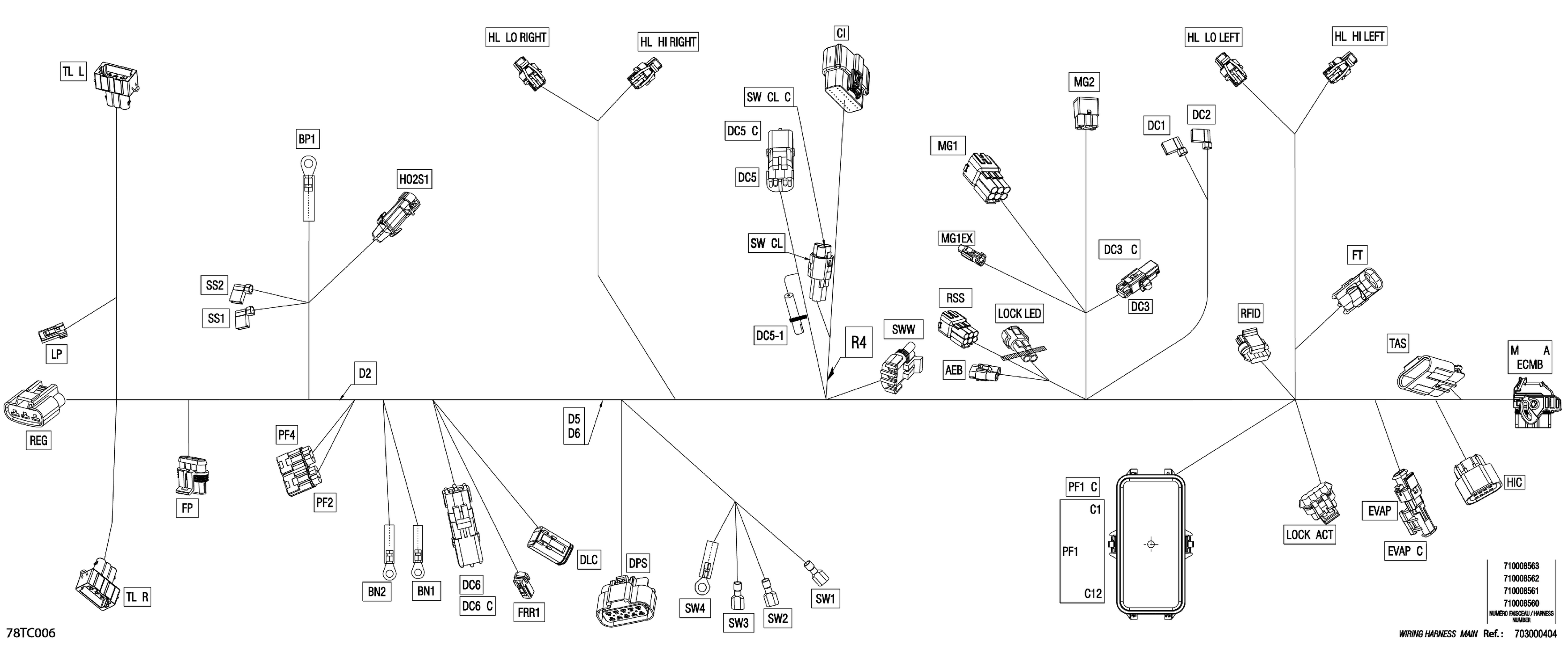 Can-Am Renegade 1000R EFI - XMR - CE, 2023 Electric - Main Harness - 710008563 Diagram