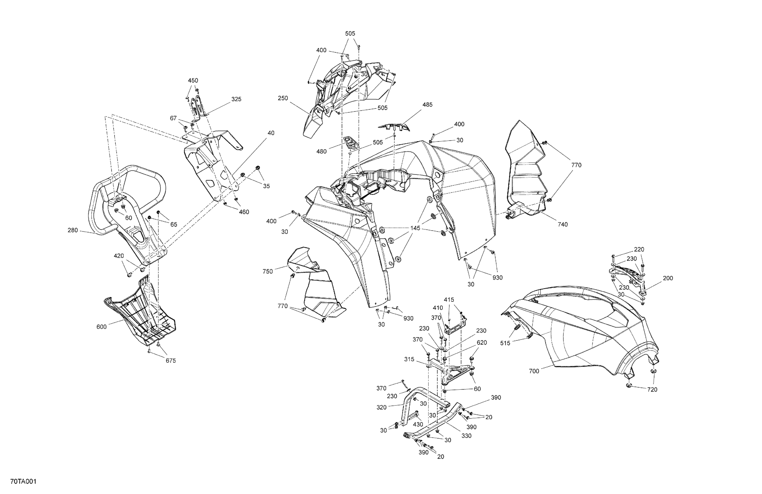 Can-Am Renegade T 1000 EFI - XXC - T Regulation, 2021 Body - Front Section Diagram