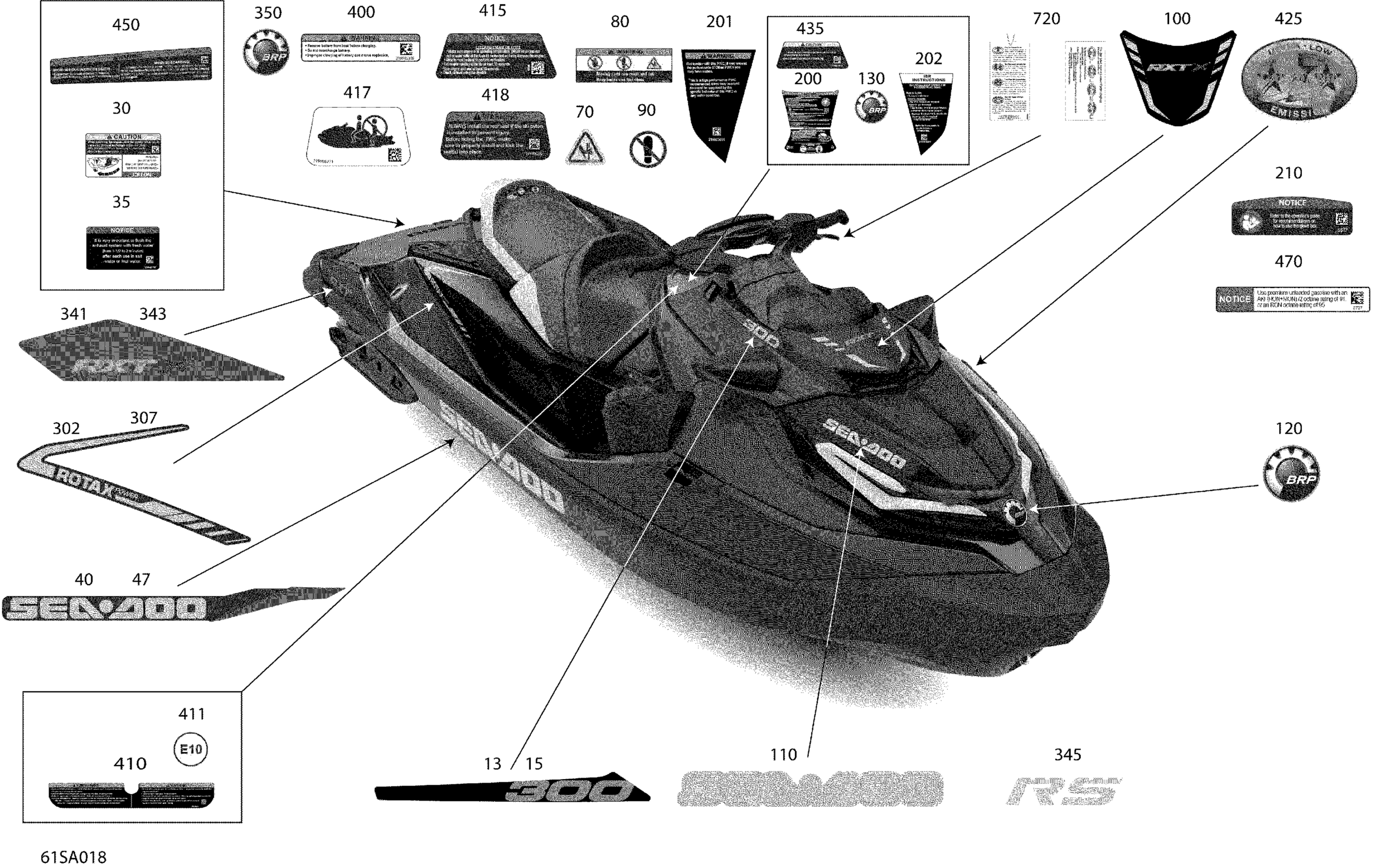 Sea-doo 002 - RXT XRS 300 - International, 2021 07- Body - Decals Diagram