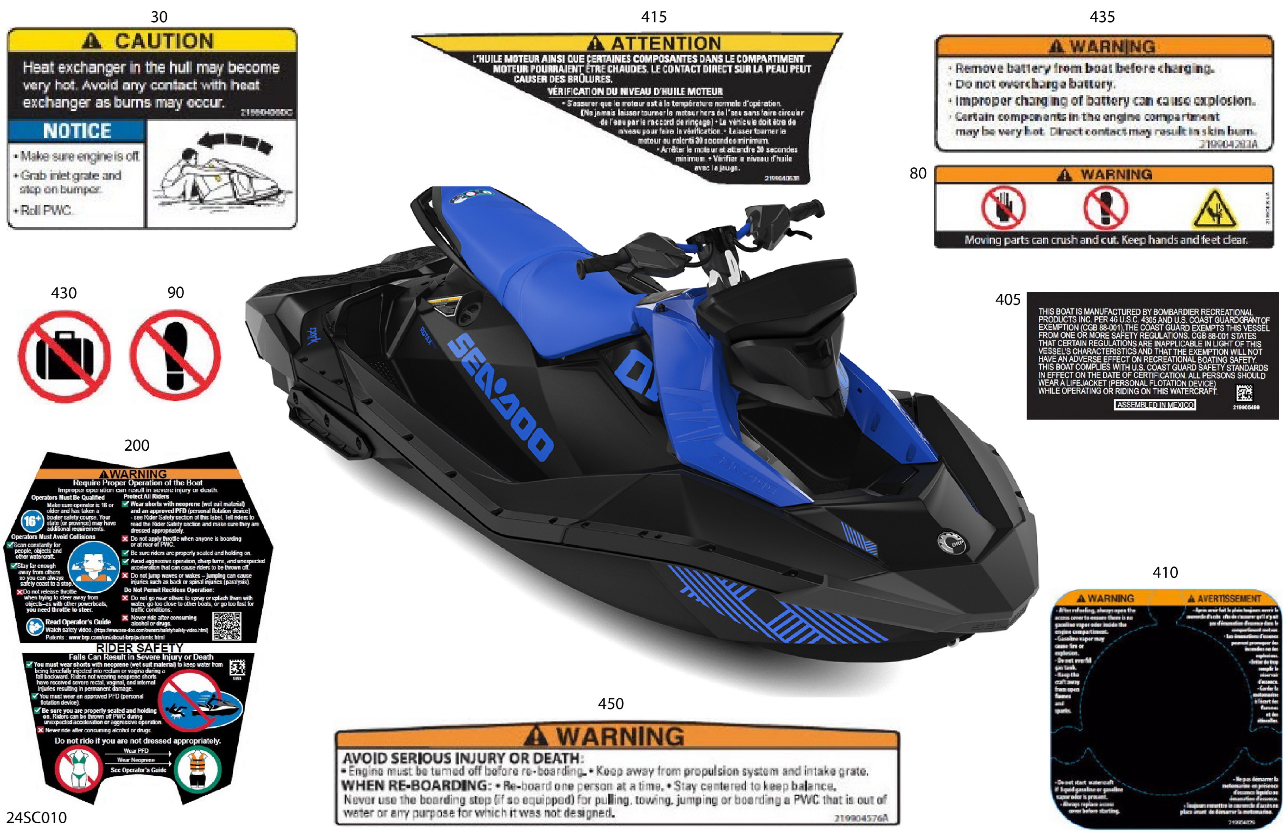 Sea-doo 002 - SPARK 90 - 2UP, 2023 07- Body - Warning Decals Diagram