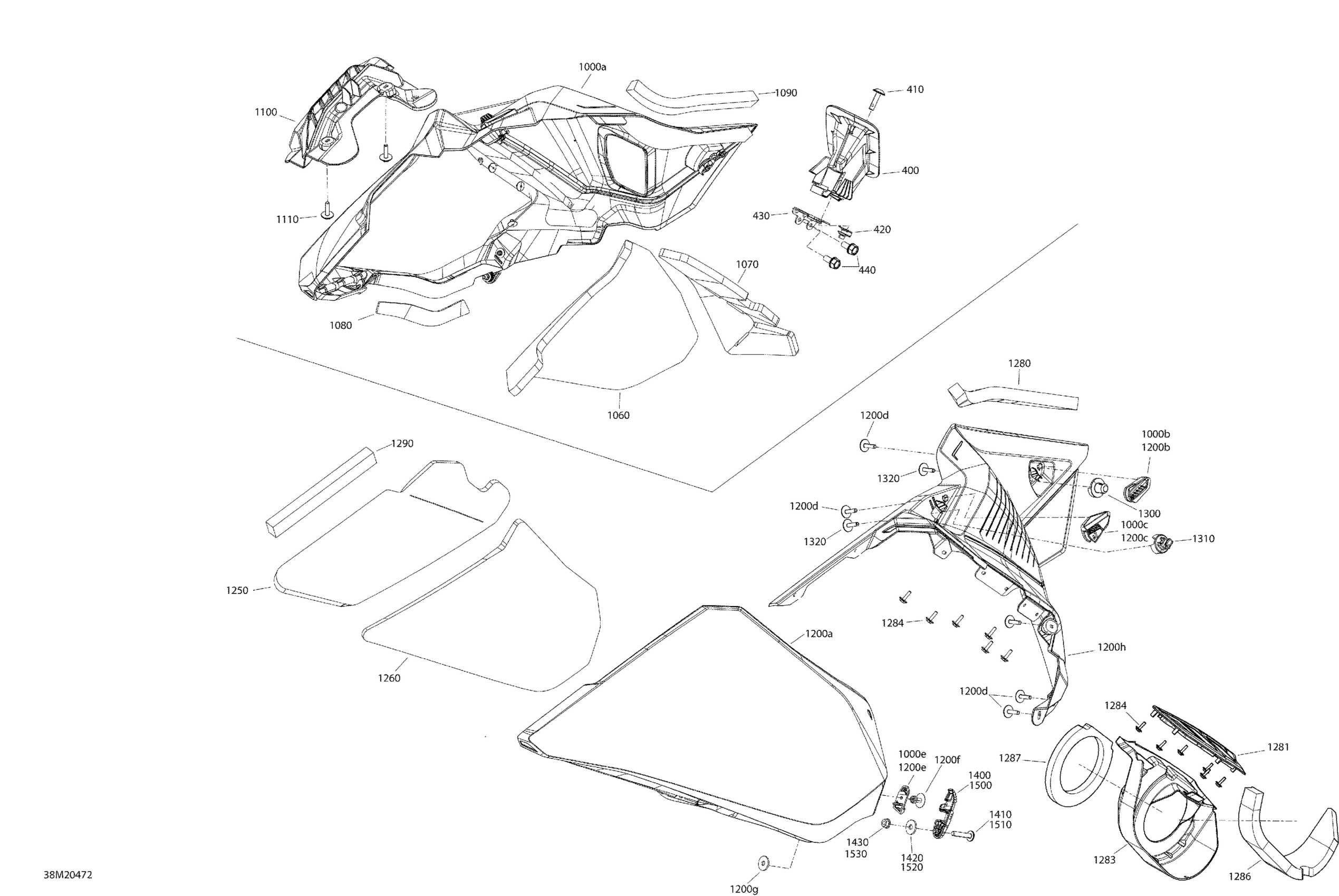 Ski-Doo SUMMIT 850 E-TEC - SP - Europe, 2020 Body - Hood Section - Lateral Panel - Gulfstream Blue - Manual Start Diagram