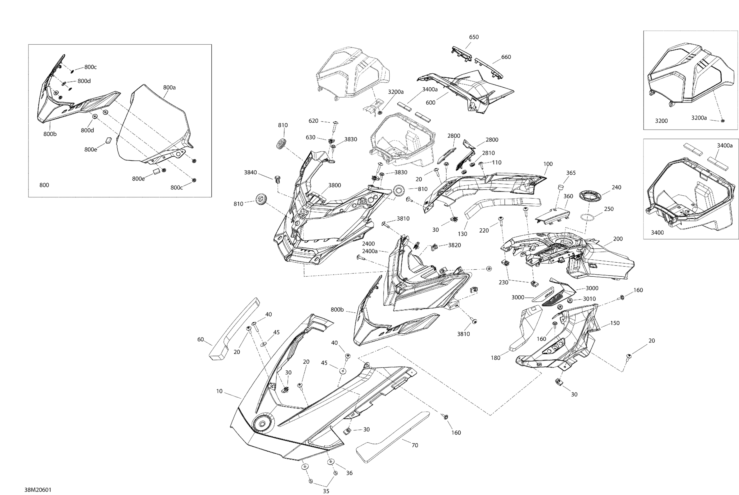 Ski-Doo 003 - BACKCOUNTRY 850 E-TEC - X - North America, 2020 09- Body - Hood Section - X - Sunburst Yellow Diagram