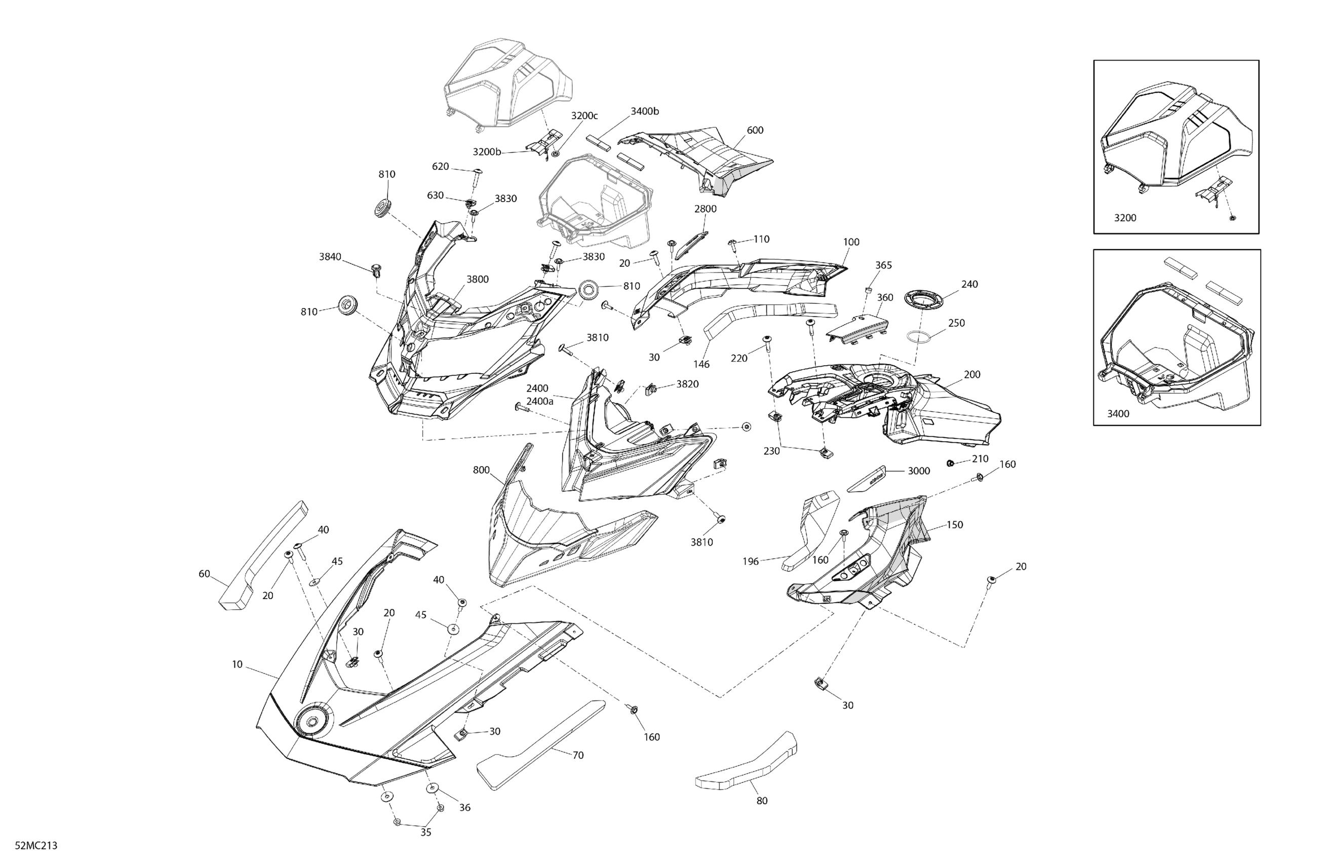 Ski-Doo 003 - BACKCOUNTRY 850 E-TEC - XRS - 146 Europe, 2023 07- Body - Hood - VIP Medium Gauge Diagram