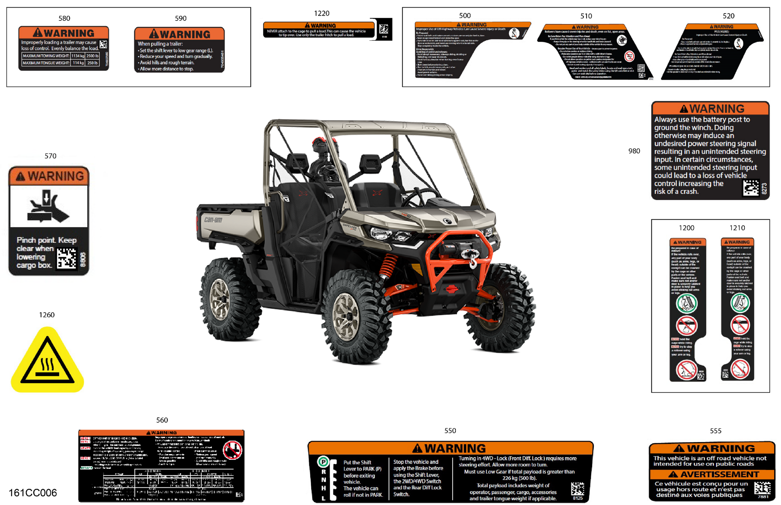 Can-Am Defender HD10 - XMR - 2023 Body - Warning Decals Diagram