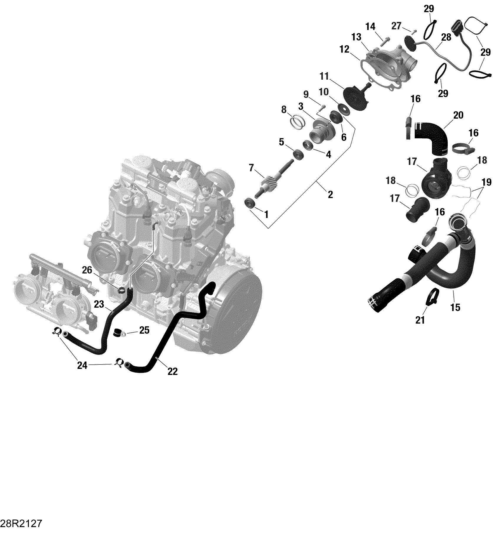 Ski-Doo FREERIDE 154 850 E-TEC Turbo - 2021 Rotax - Engine Cooling - Turbo Diagram