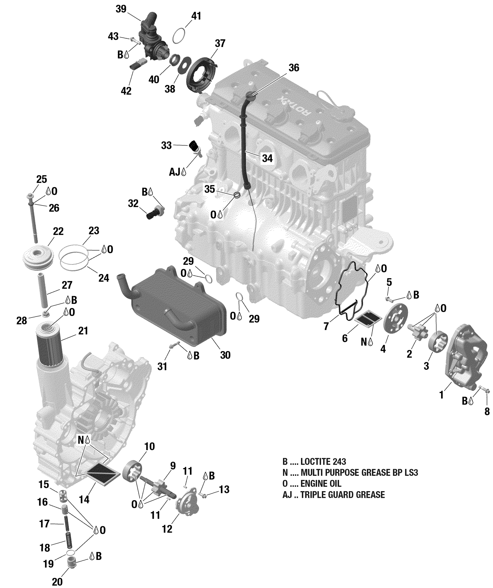 Sea-doo 003 - GTX 300, 2019 01- Engine Lubrication Diagram