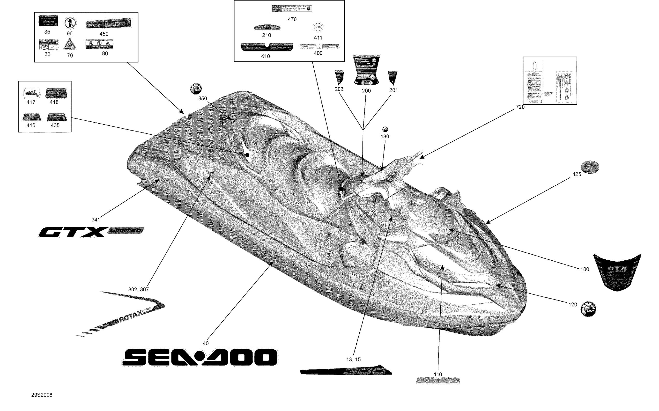 Sea-doo GTX 300, 2020 Decals Diagram