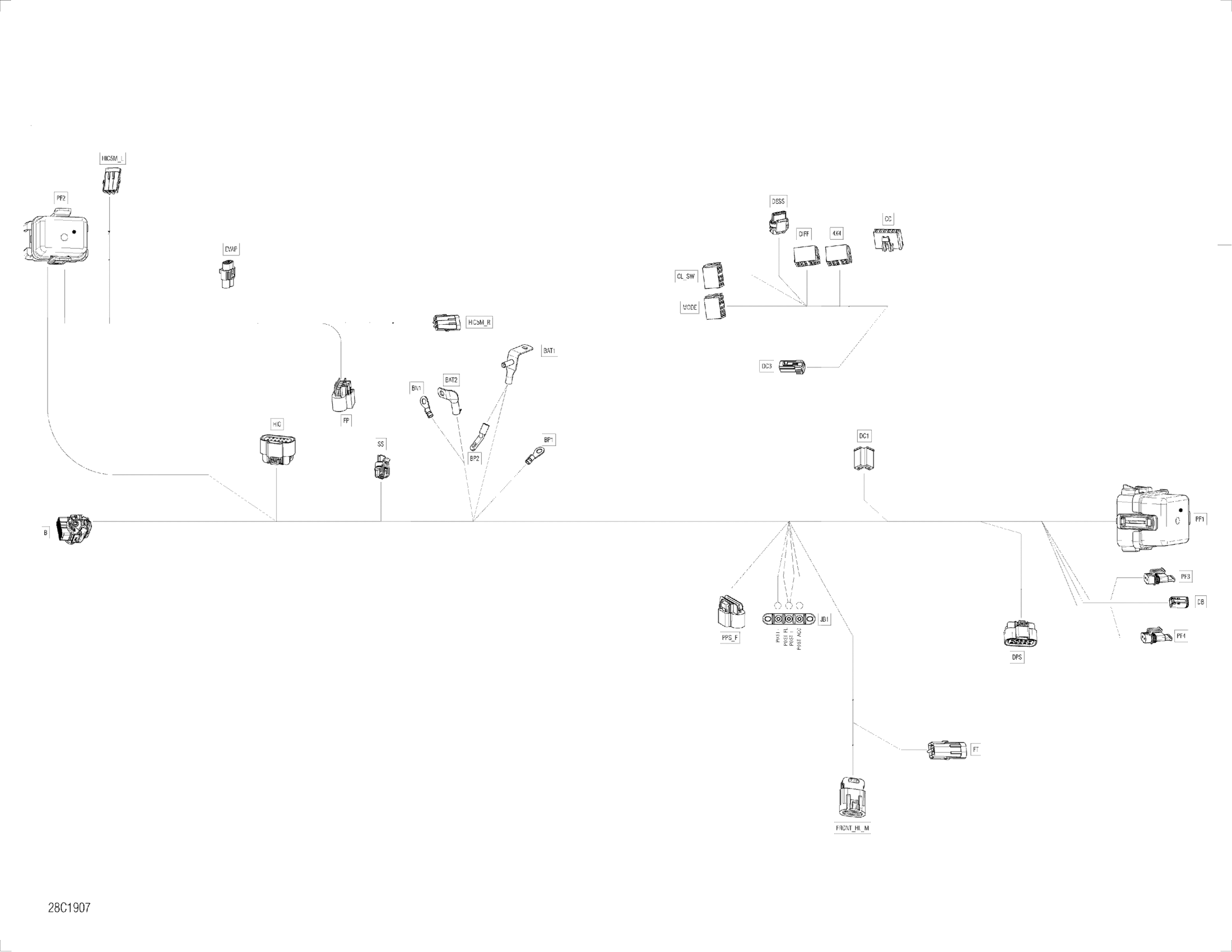 Can-Am Maverick Trail 1000 - DPS - T2B Series, 2019 Main Harness - 710006235 - DPS Diagram