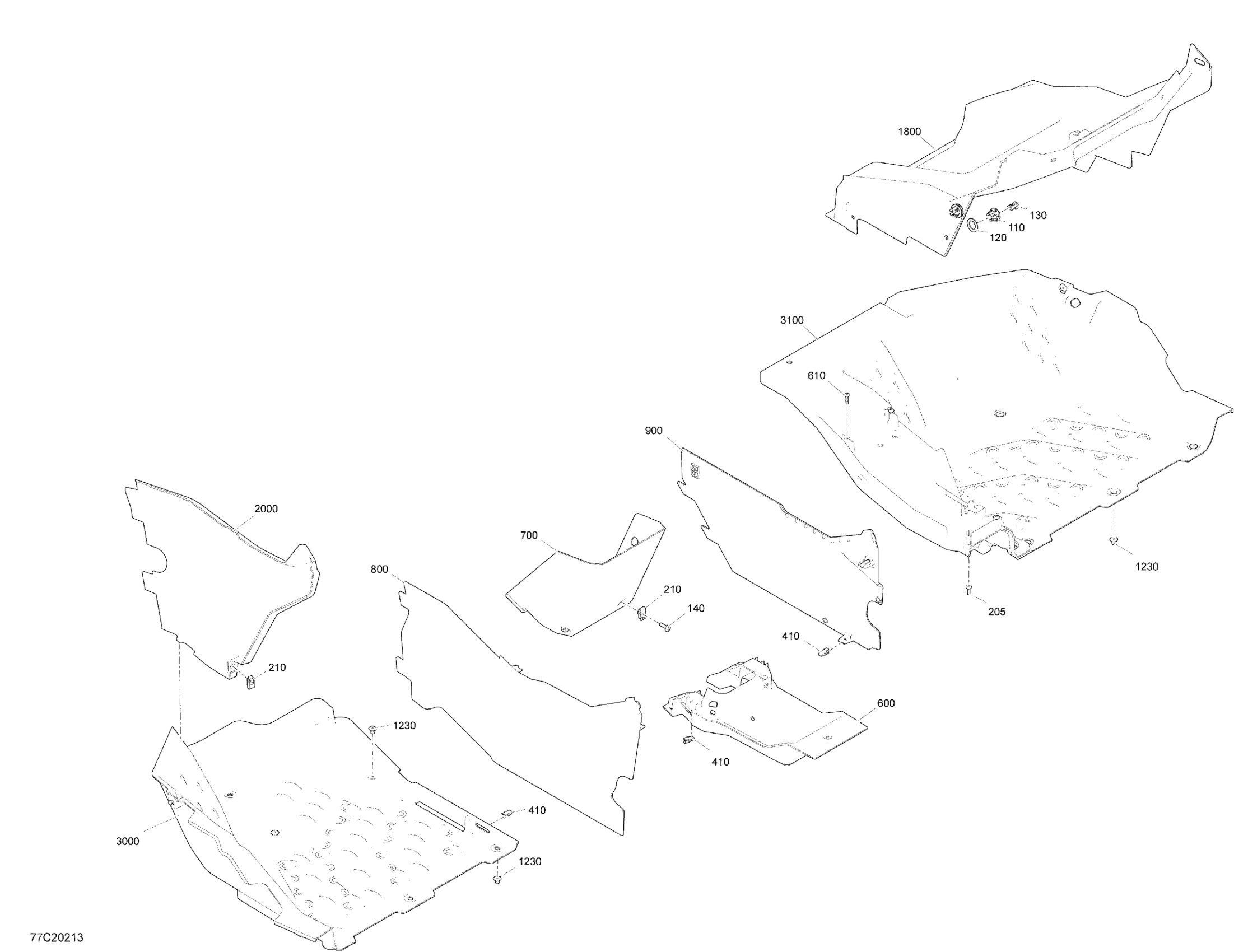 Can-Am Maverick Turbo - XMR - 2020 Cab Interior - Floor Section - XMR Diagram