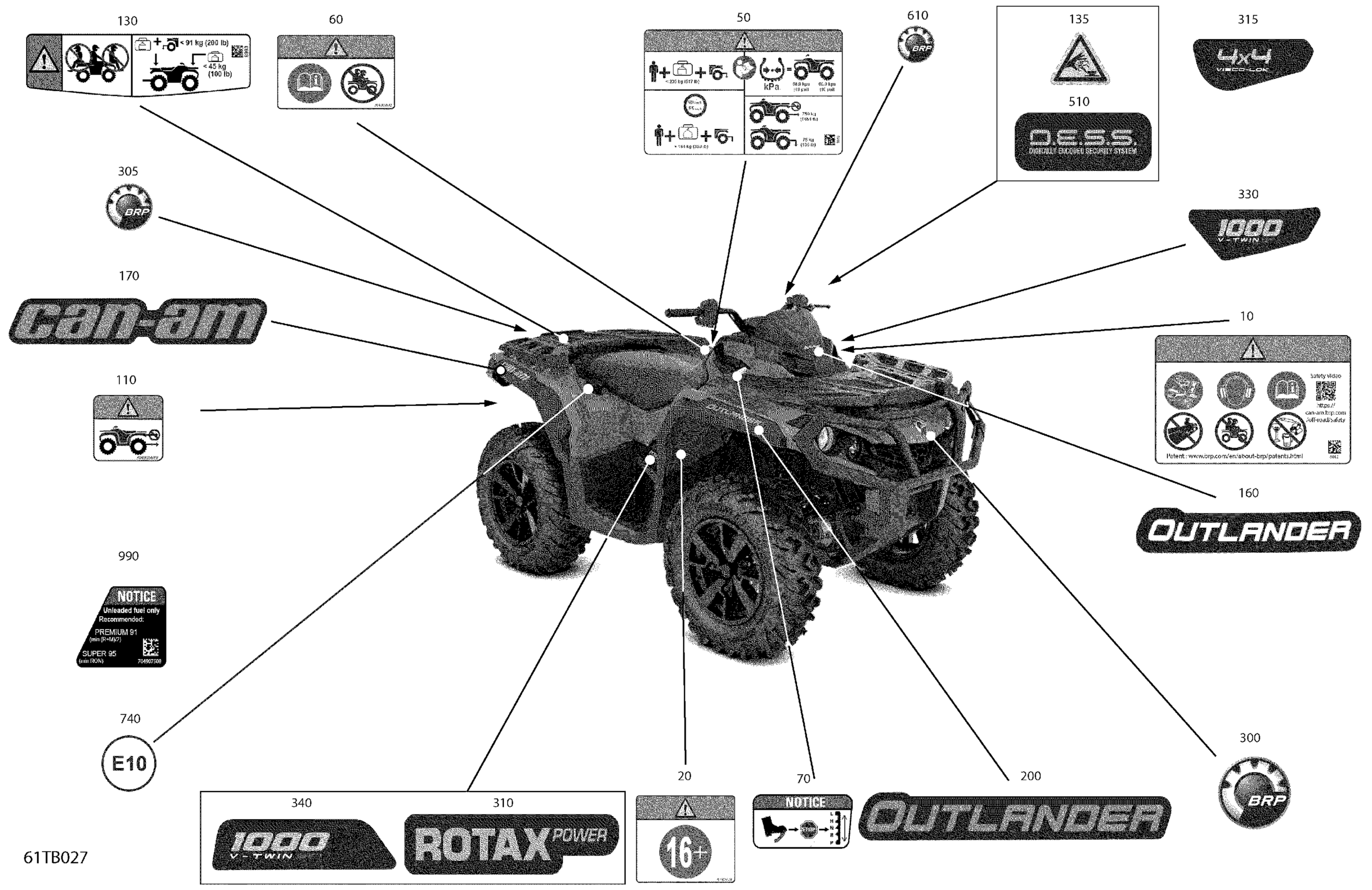 Can-Am Outlander 1000R EFI - DPS - CE, 2022 Body - Decals Diagram