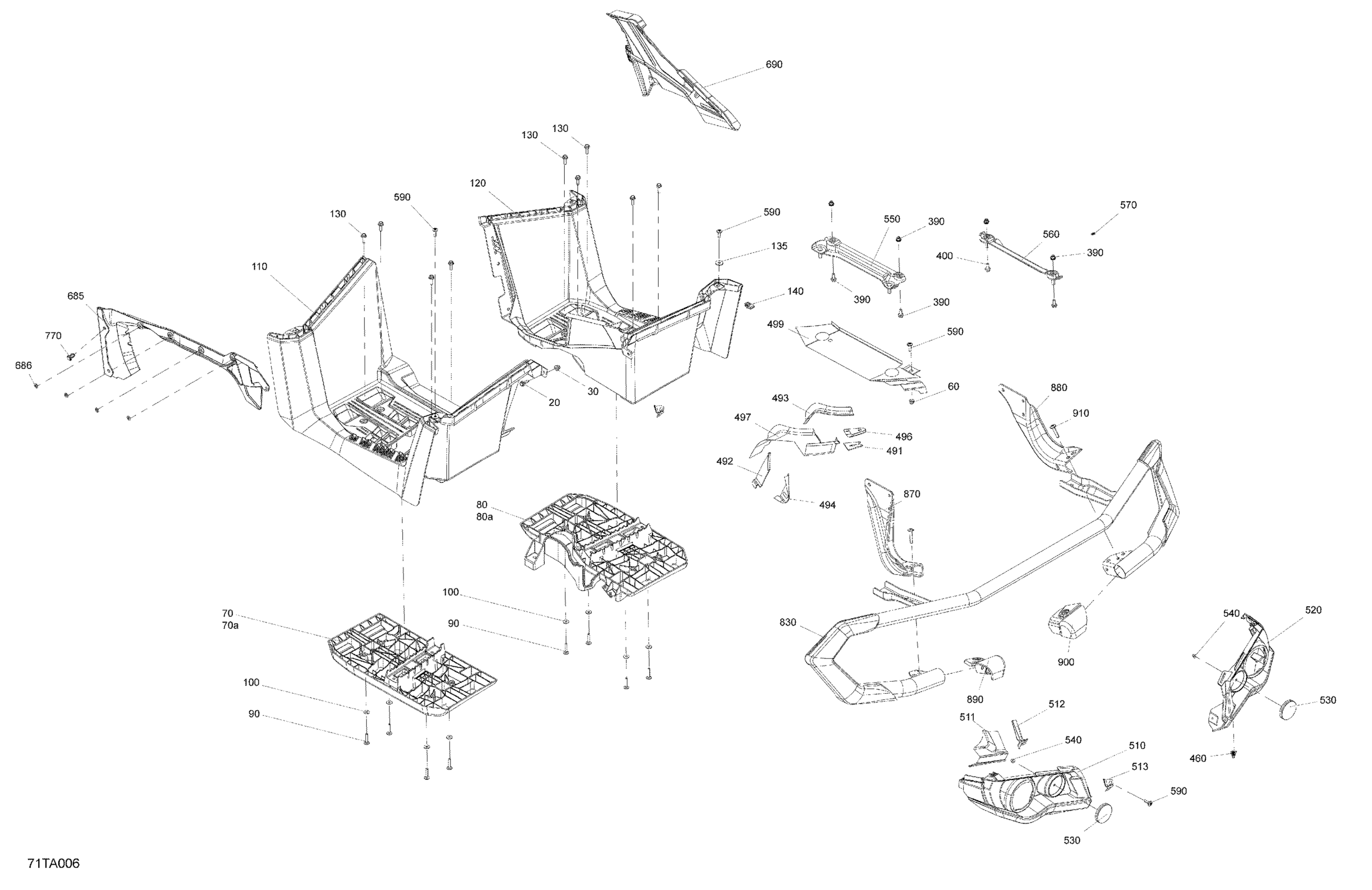 Can-Am Outlander 650 EFI - STD_DPS_XT_Mossy Oak Edition - 2021 Body - Rear Section Diagram