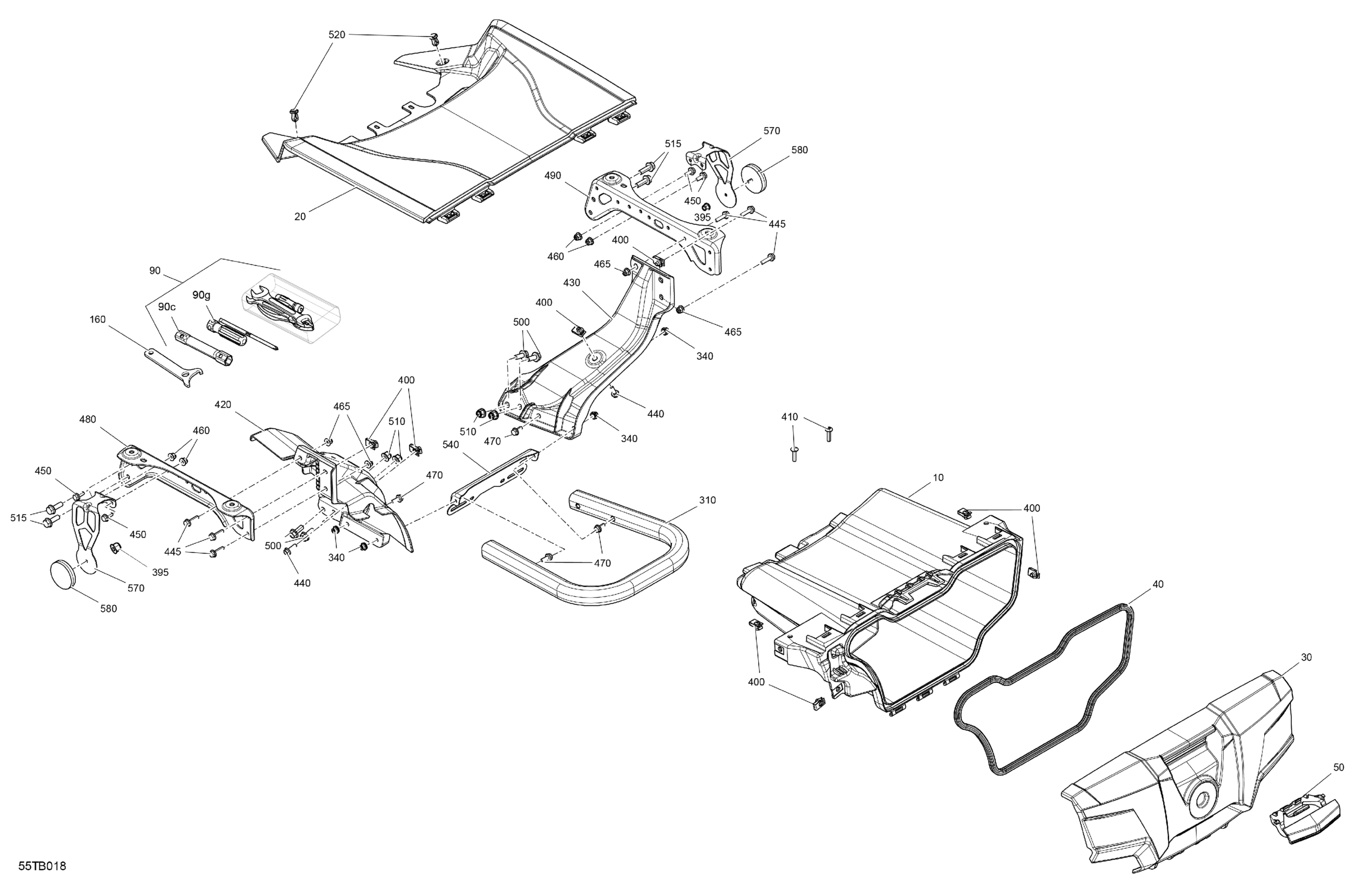 Can-Am Outlander 1000R EFI - XXC - 2022 Body - Front Storage Tray Diagram