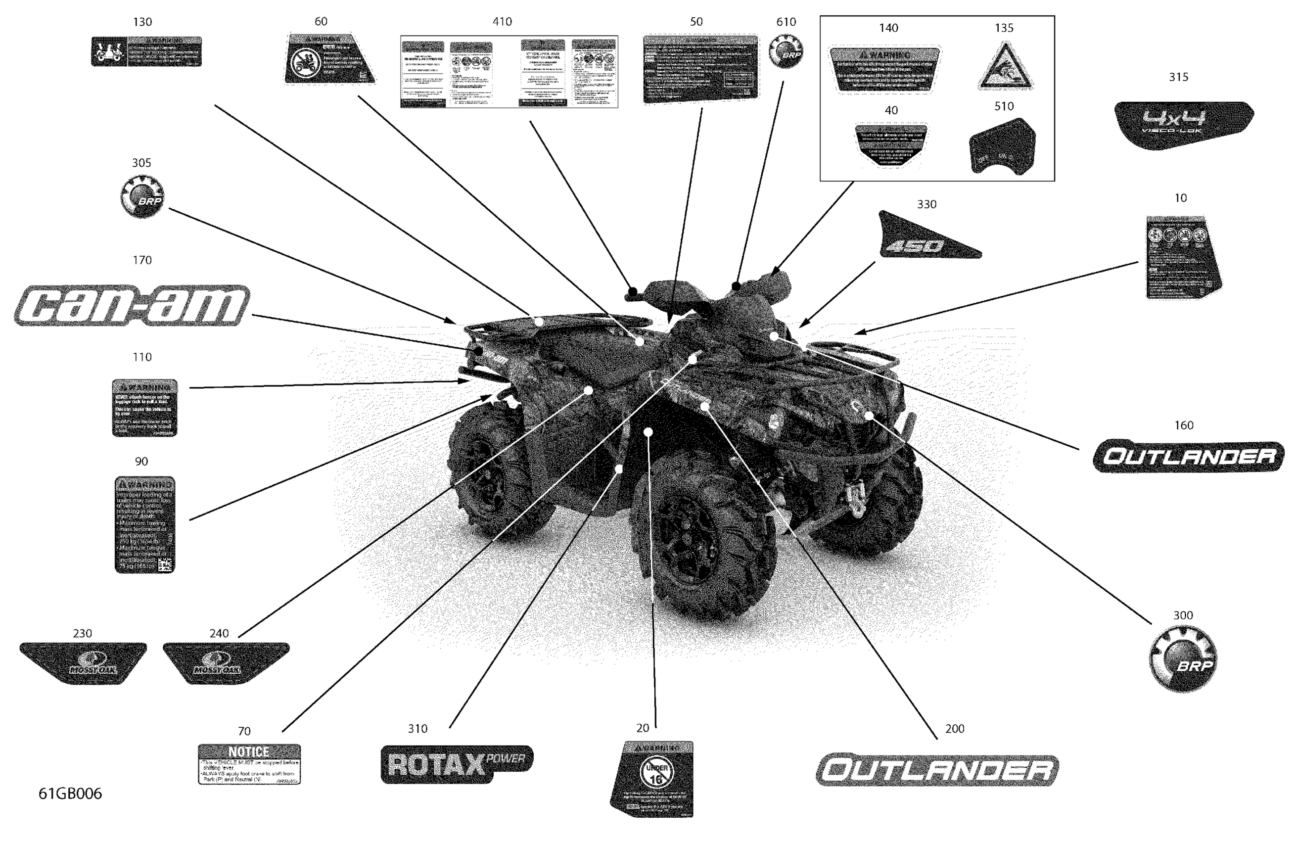 Can-Am Outlander 450 EFI - Mossy Oak Edition - 2022 Body - Decals Diagram